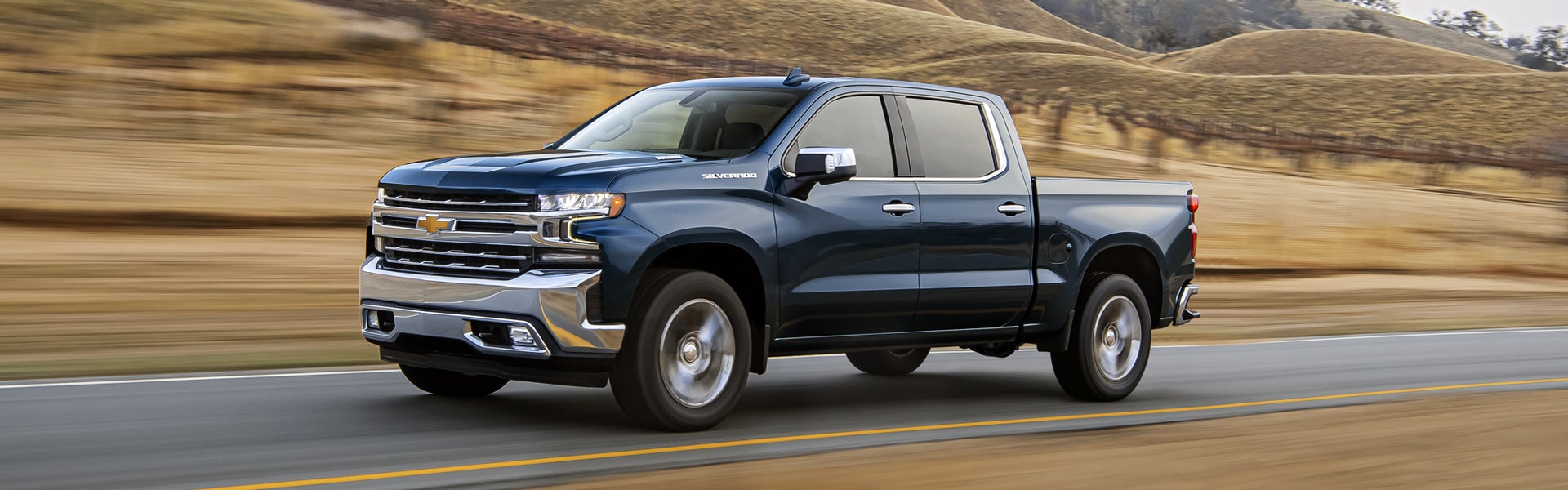 The Silverado 1500 is available in Work Truck (WT), Custom, LT, RST, LTZ, and High Country trim levels. Additionally, the rugged Custom Trail Boss and LT Trail Boss have unique black styling cues and off-road features. The WT offers daytime running lights, black bumpers, 17-inch steel wheels, cab-mounted cargo lights, 12 cargo tie-downs, and a corner step rear bumper.