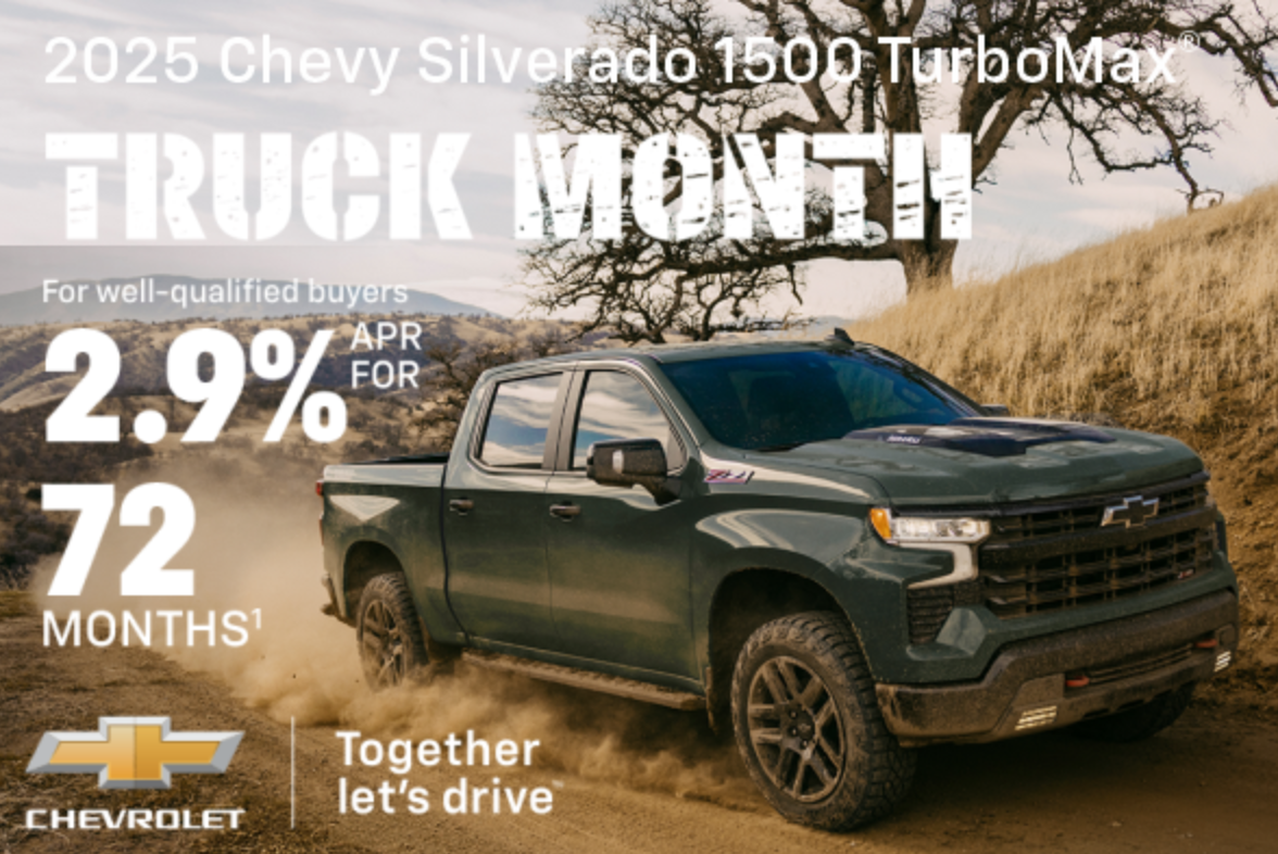 Right now, you can finance a new 2025 Chevy Silverado 1500 with rates as low as 2.9% APR for up to 72 months! Whether you’re looking for rugged power for work or weekend adventures, the Silverado 1500 delivers big performance, advanced technology, and unbeatable durability. But hurry — this offer expires on April 30, 2025!
