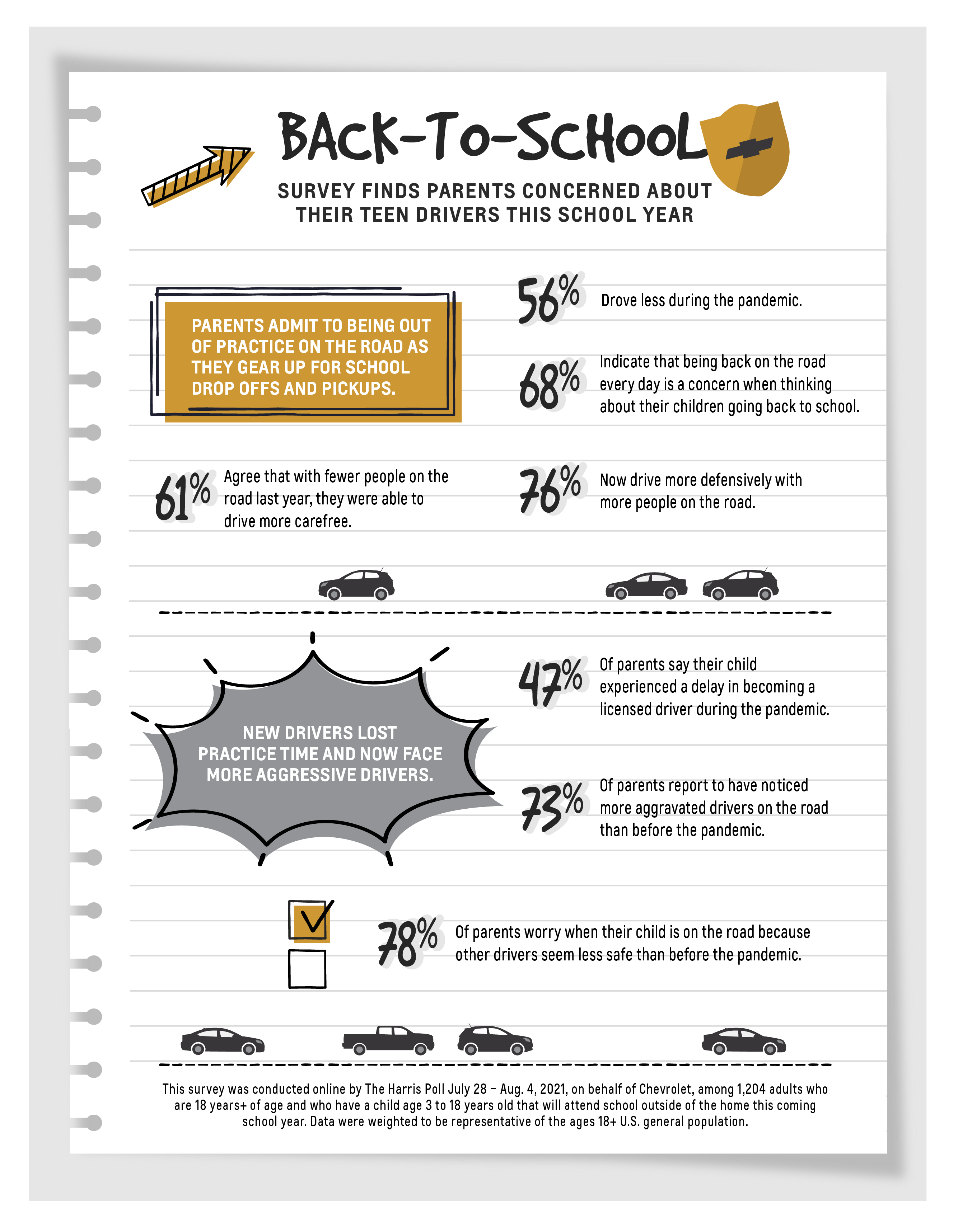 With the back-to-school season in full swing, Chevrolet worked with The Harris Poll to survey more than 1,000 parents of school-aged children to discover how the pandemic affected their driving skills and the new realities that teen drivers face.