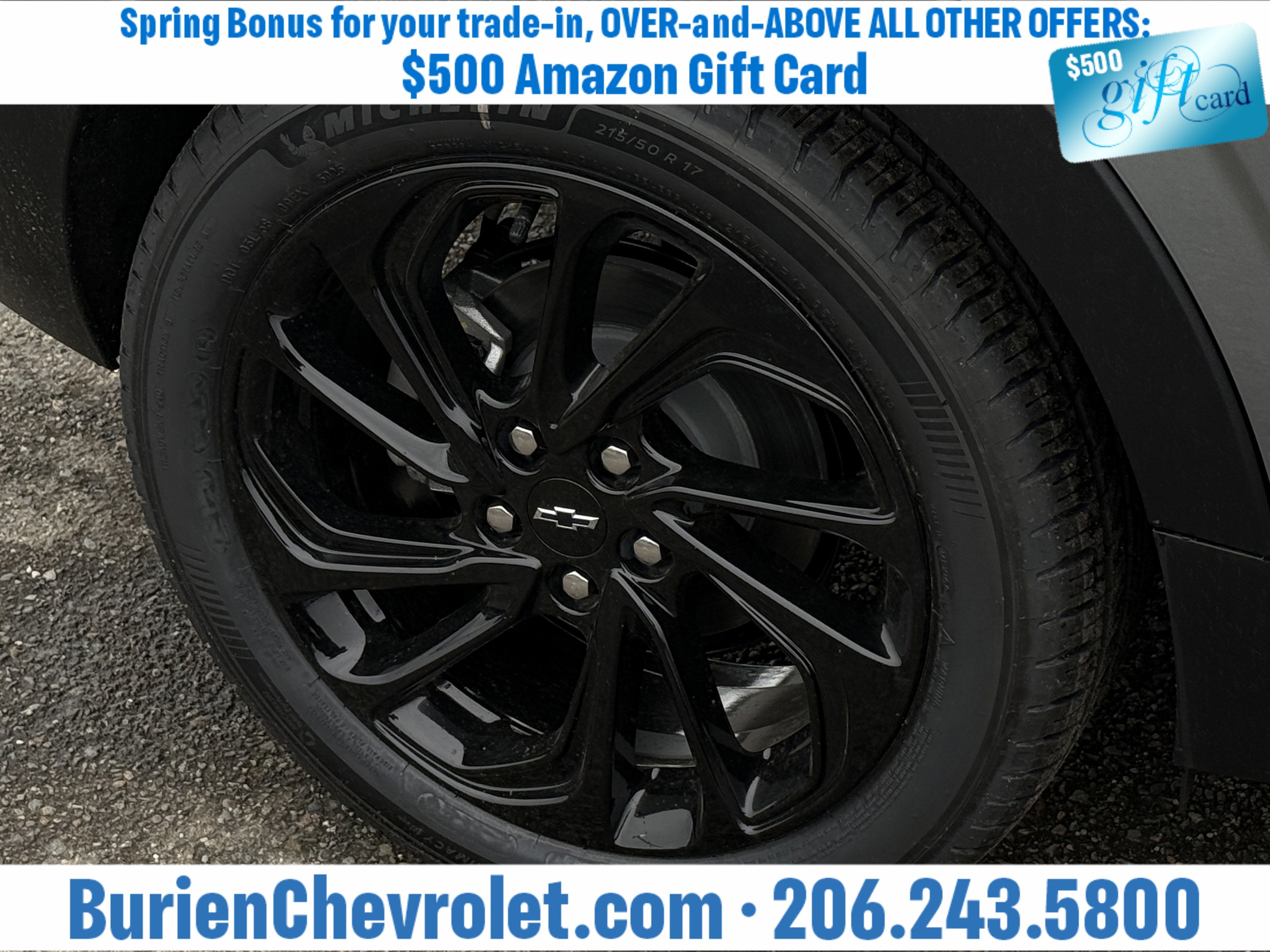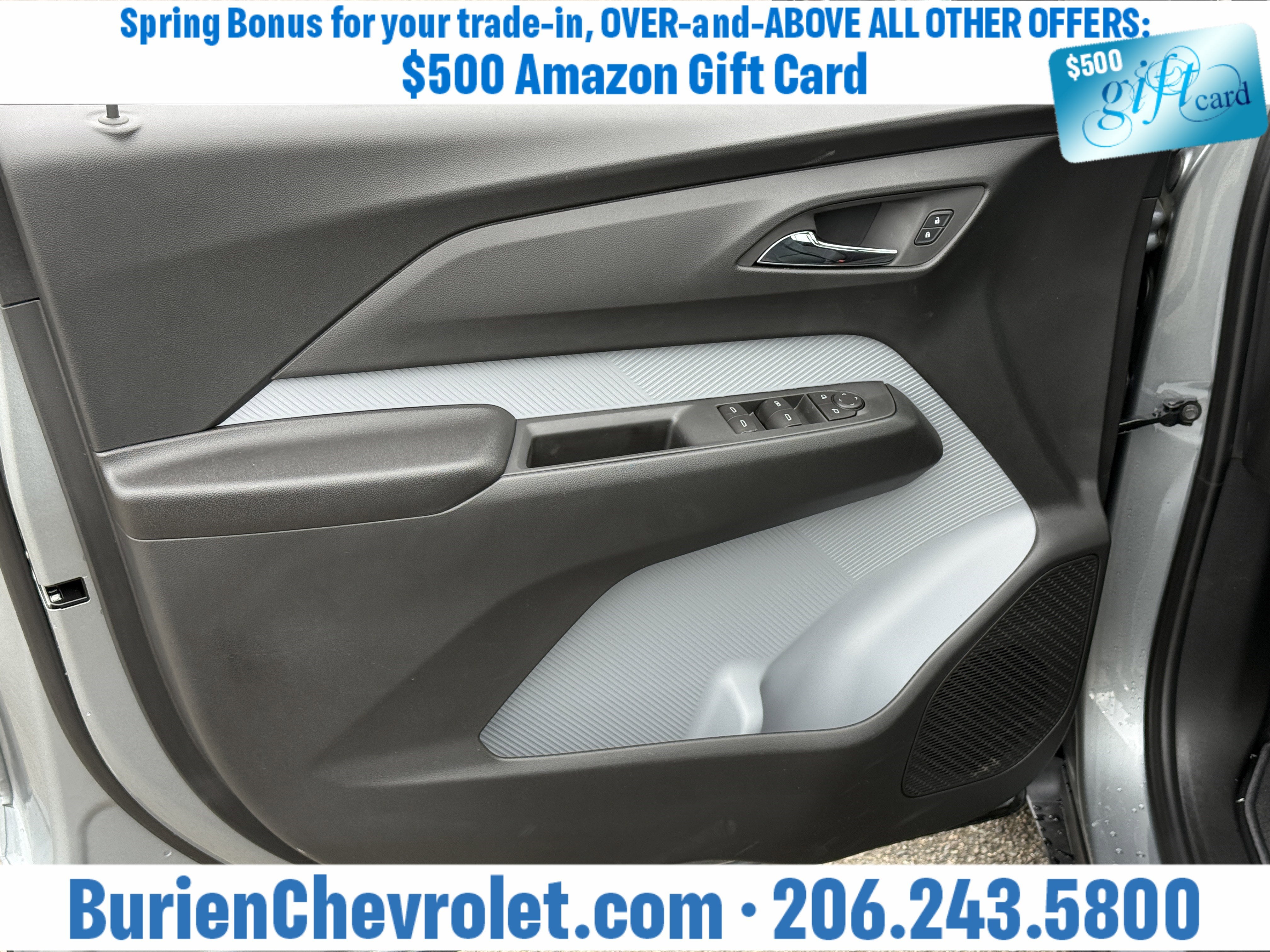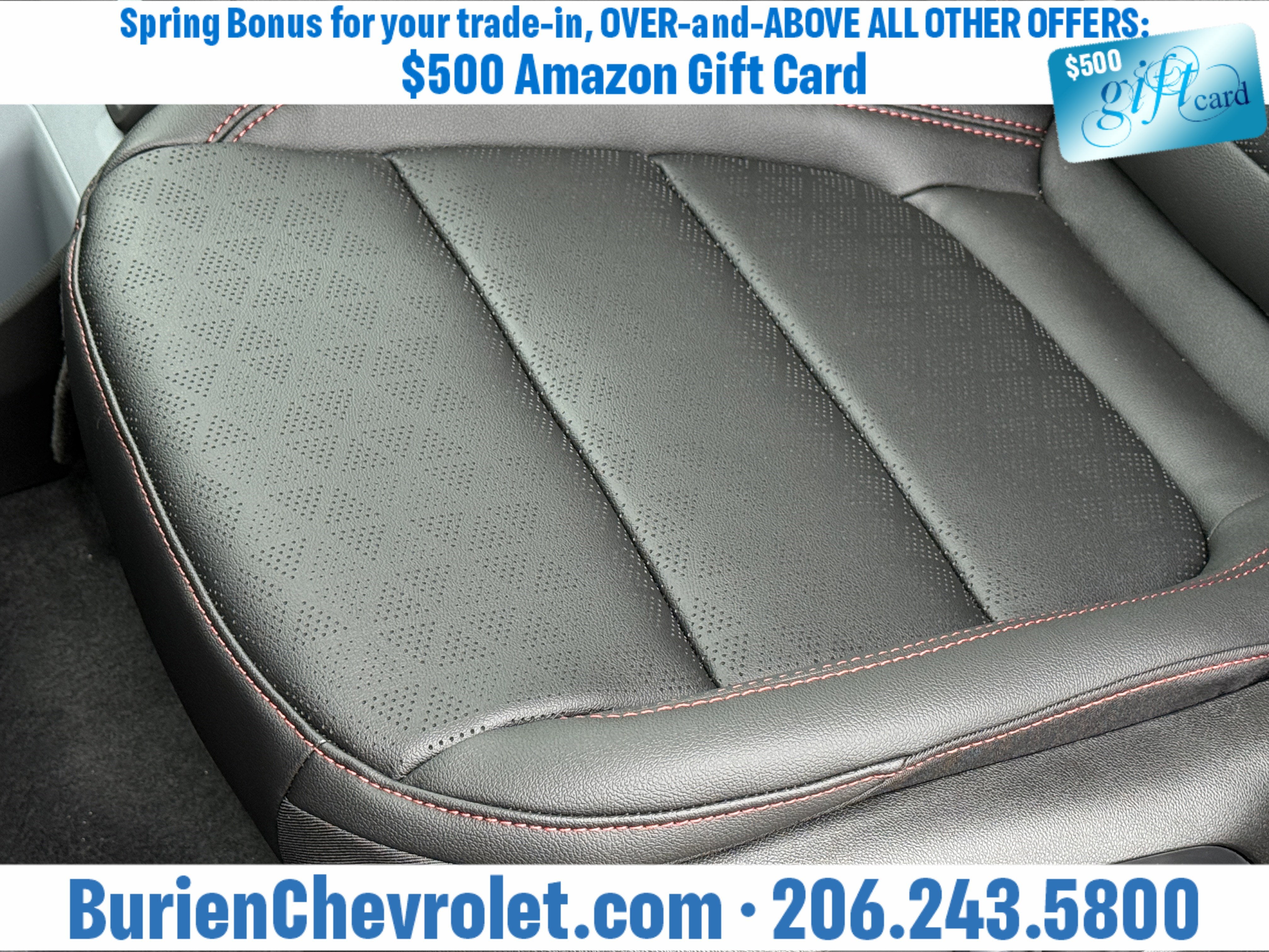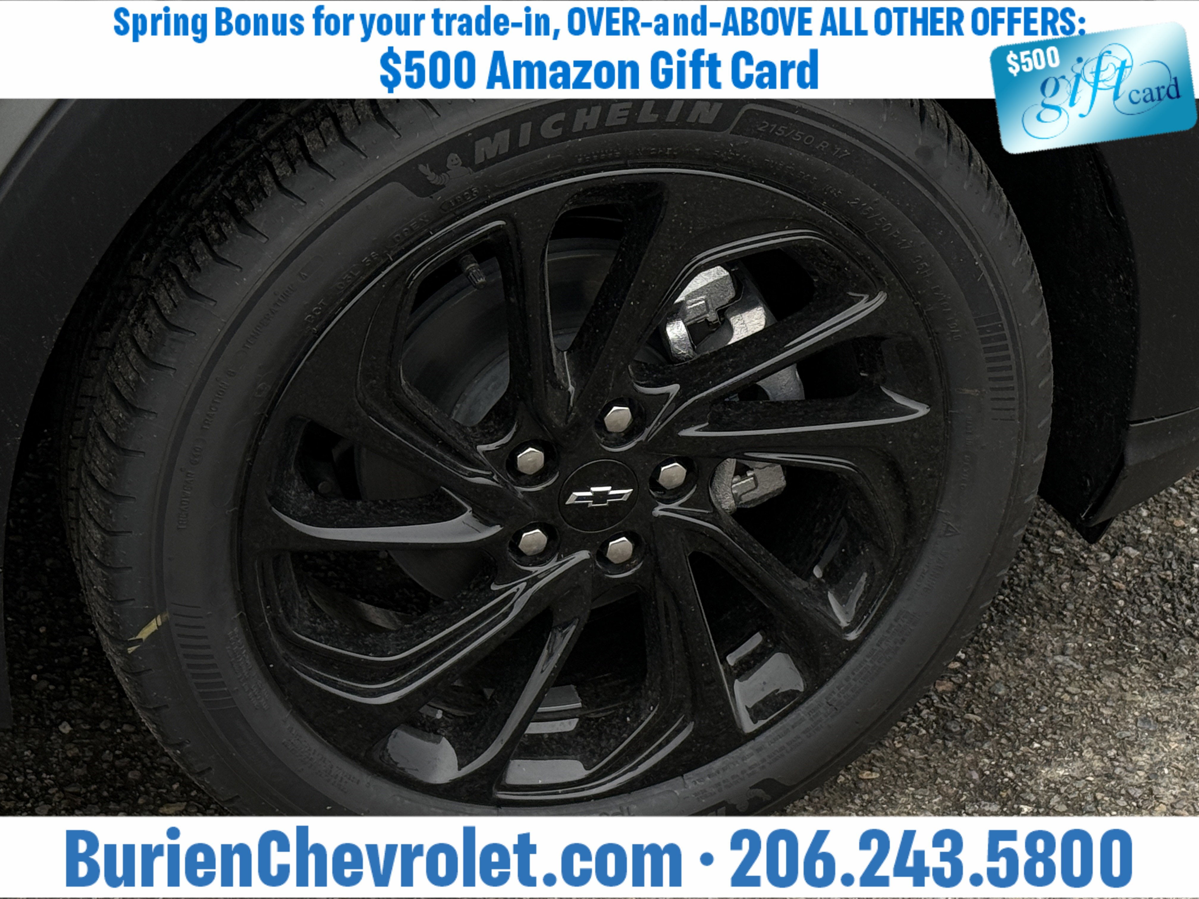 Prices for vehicles as equipped do not include charges such as: License, Title, Registration Fees, State or Local Taxes, Finance Charges, Credit Investigation, Optional Credit Insurance, Physical Damage or Liability Insurance, Delivery Fees, or a negotiable $200 Documentary Services Fee. All photos and graphics for illustration purposes only. Where actual vehicle photos are not available, stock image representations may be displayed. Prototype features or options may be displayed. Dealership makes no representations, expressed or implied, to any actual or prospective purchaser or owner of vehicles as to the existence, ownership, accuracy, description or condition of vehicles' listed equipment, accessories, price or any warranties. Prices may include dealer installed options. Any and all differences must be addressed prior to the sales transaction. The Employee Discount for Everyone is not compatible with Lease offers. See Burien Chevrolet for details.