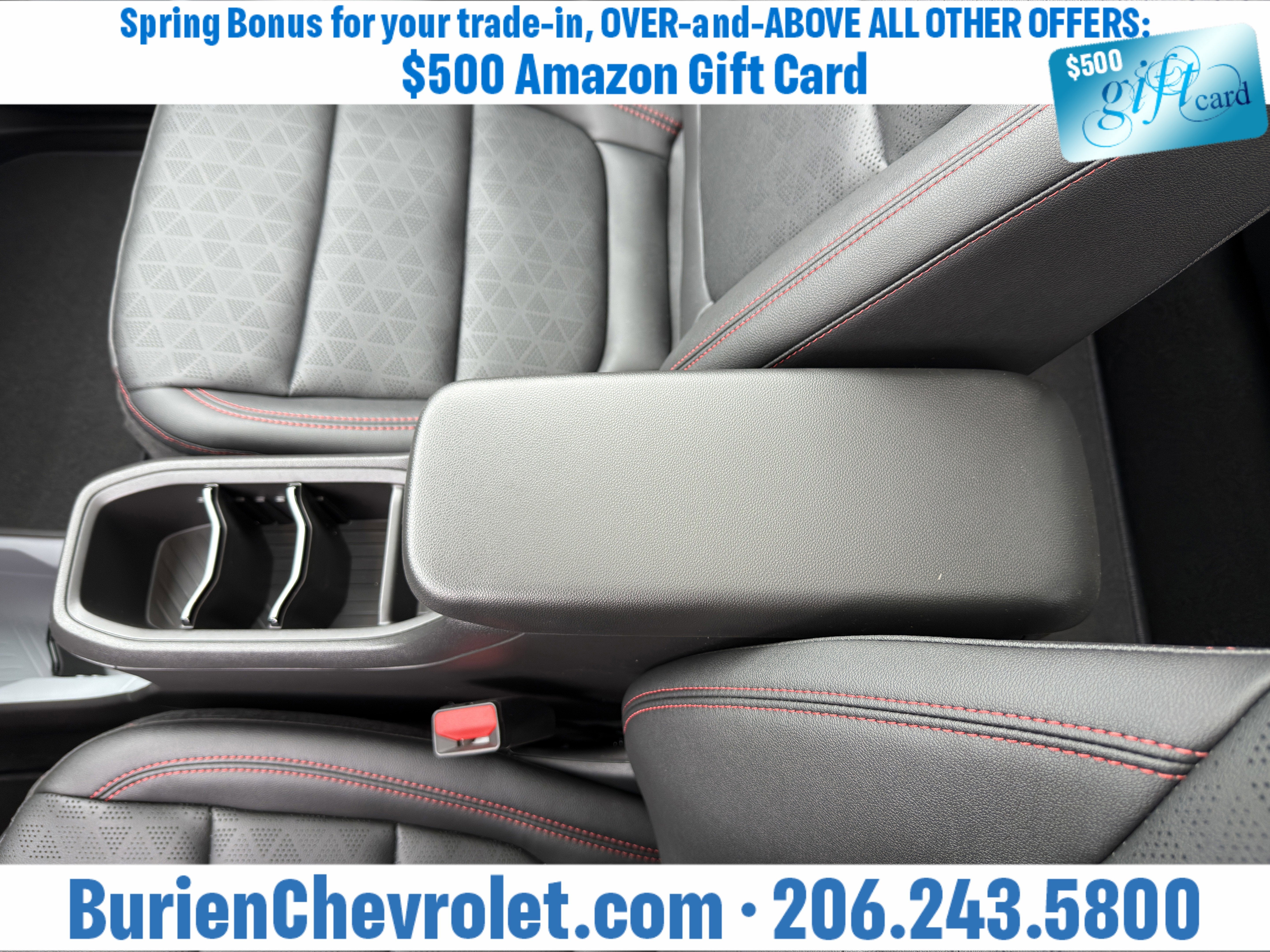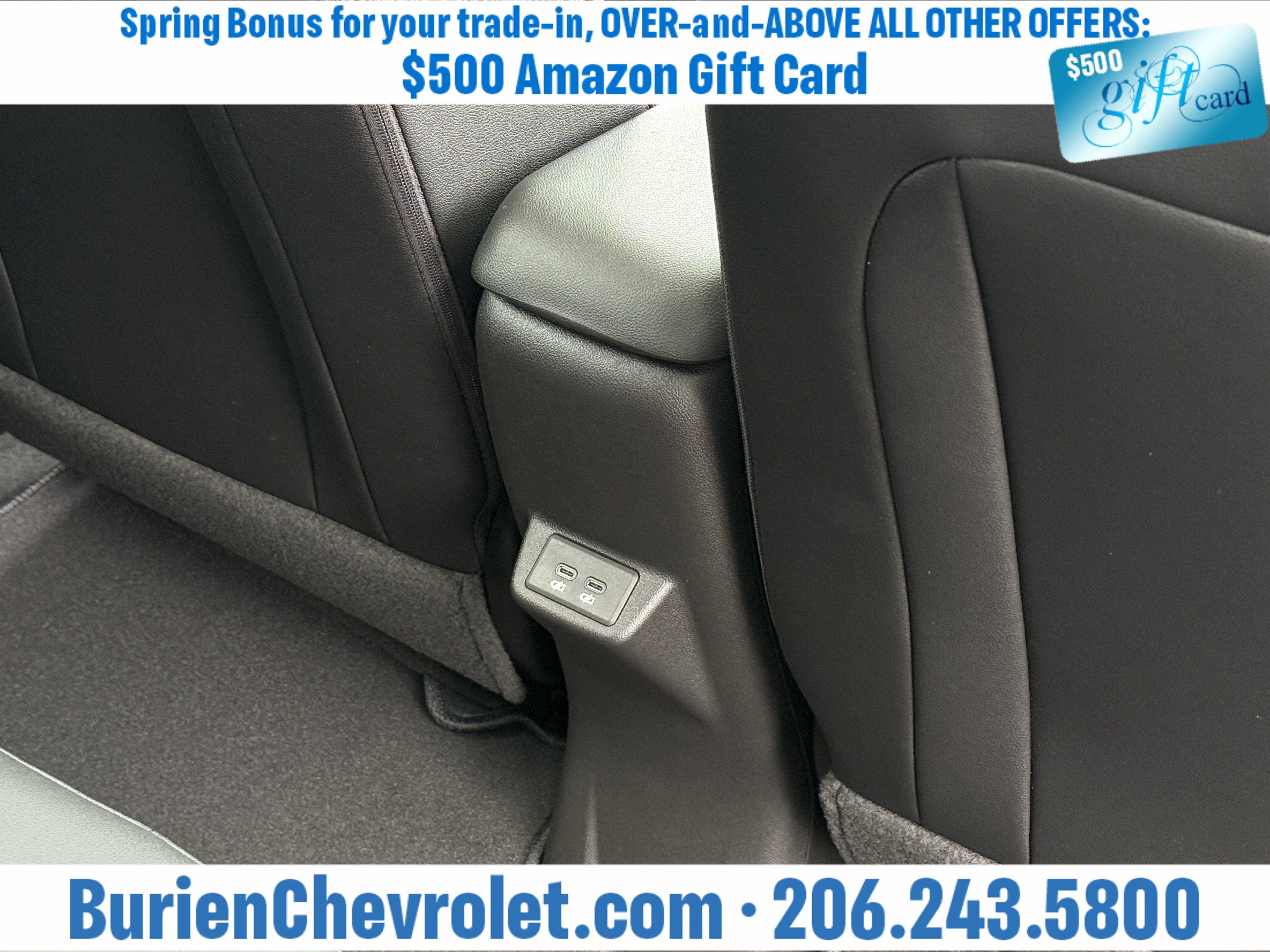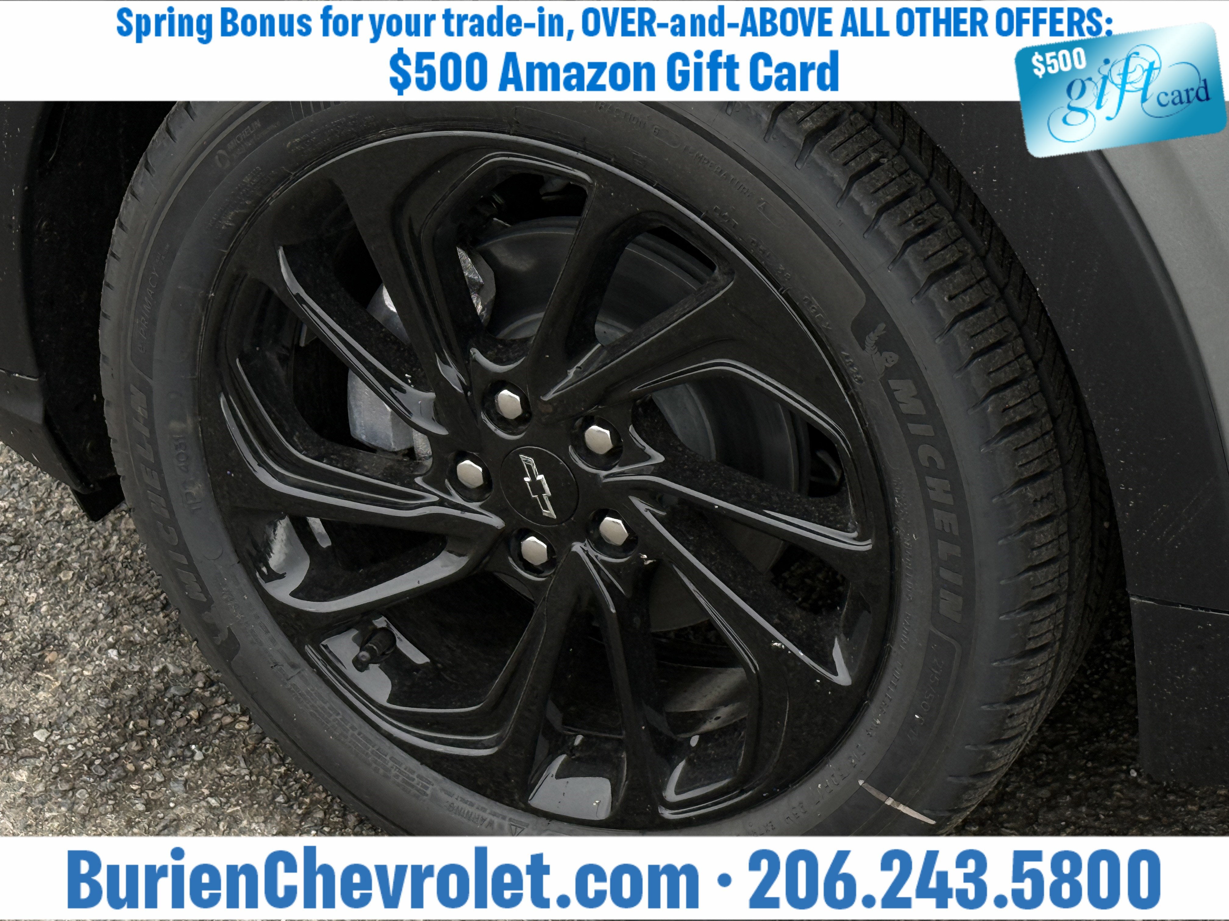 Prices for vehicles as equipped do not include charges such as: License, Title, Registration Fees, State or Local Taxes, Finance Charges, Credit Investigation, Optional Credit Insurance, Physical Damage or Liability Insurance, Delivery Fees, or a negotiable $200 Documentary Services Fee. All photos and graphics for illustration purposes only. Where actual vehicle photos are not available, stock image representations may be displayed. Prototype features or options may be displayed. Dealership makes no representations, expressed or implied, to any actual or prospective purchaser or owner of vehicles as to the existence, ownership, accuracy, description or condition of vehicles' listed equipment, accessories, price or any warranties. Prices may include dealer installed options. Any and all differences must be addressed prior to the sales transaction. The Employee Discount for Everyone is not compatible with Lease offers. See Burien Chevrolet for details.