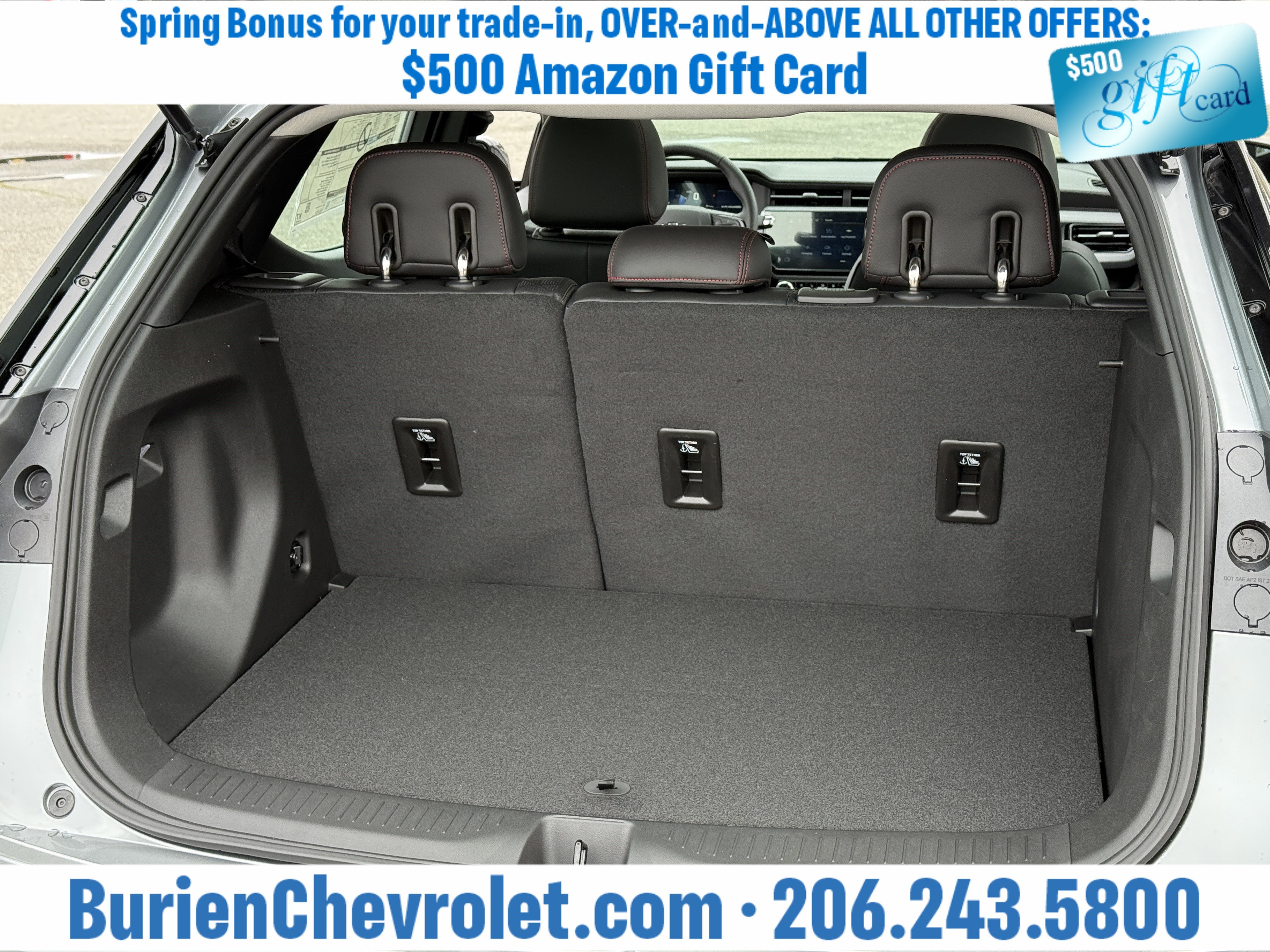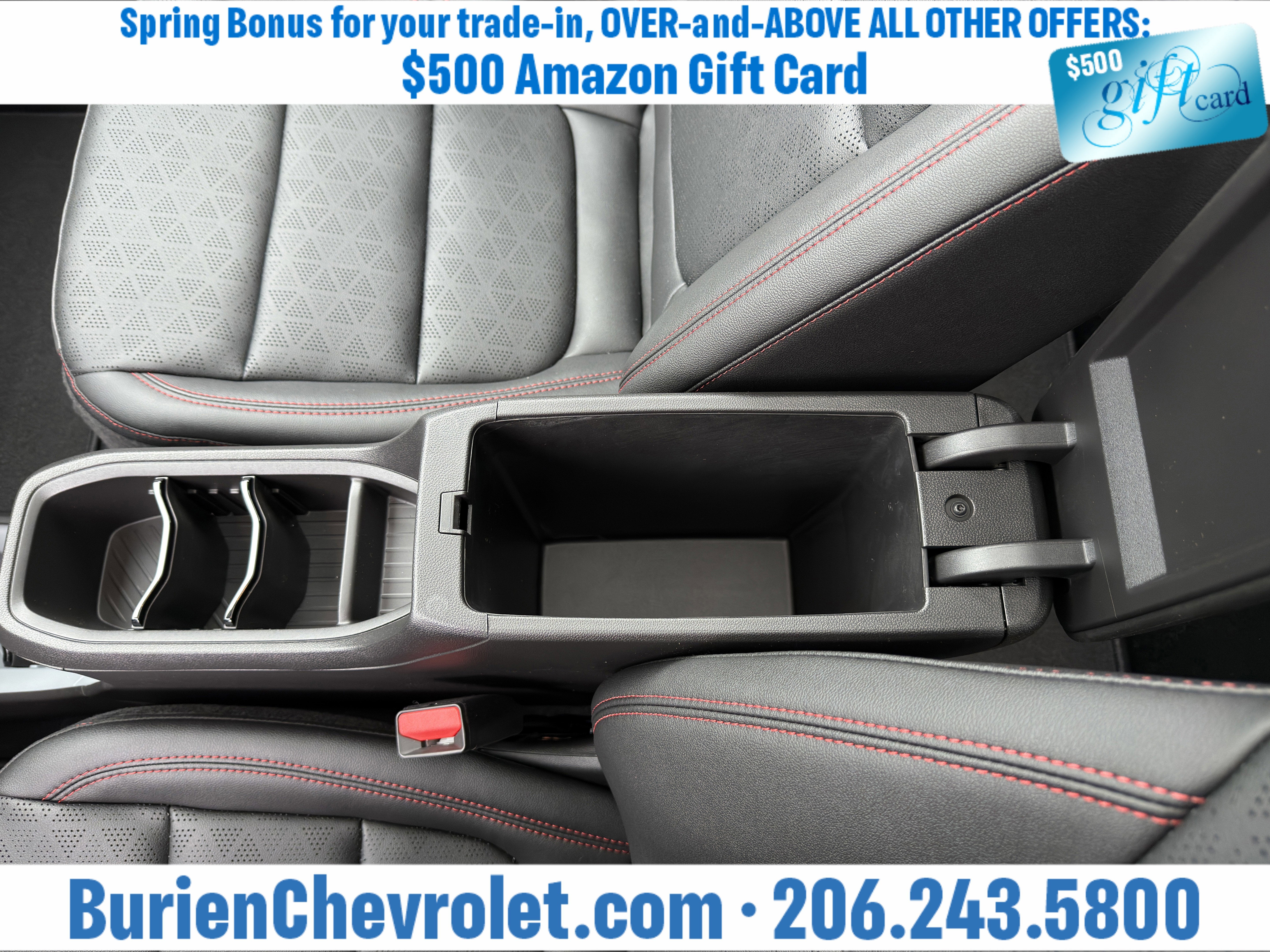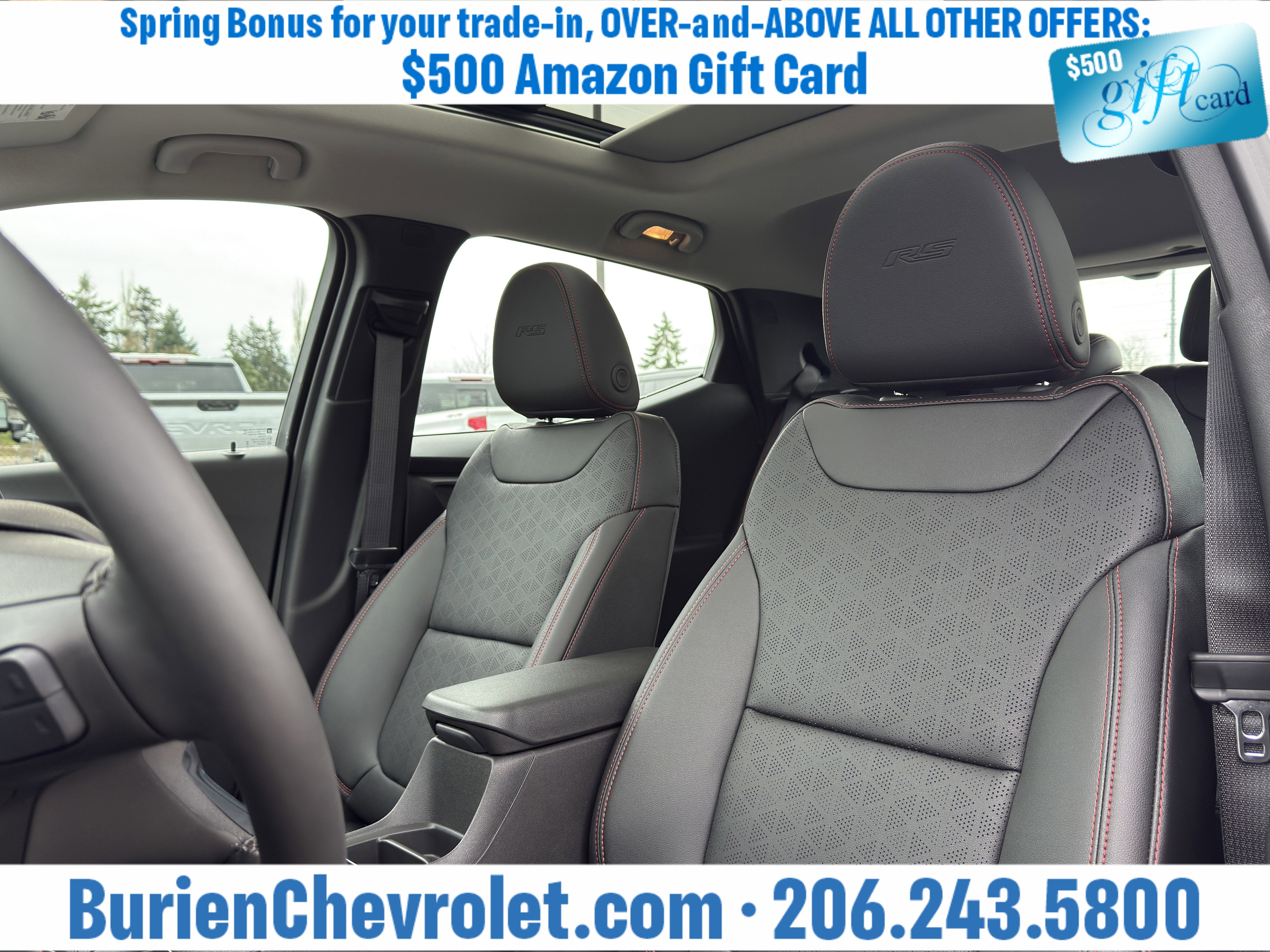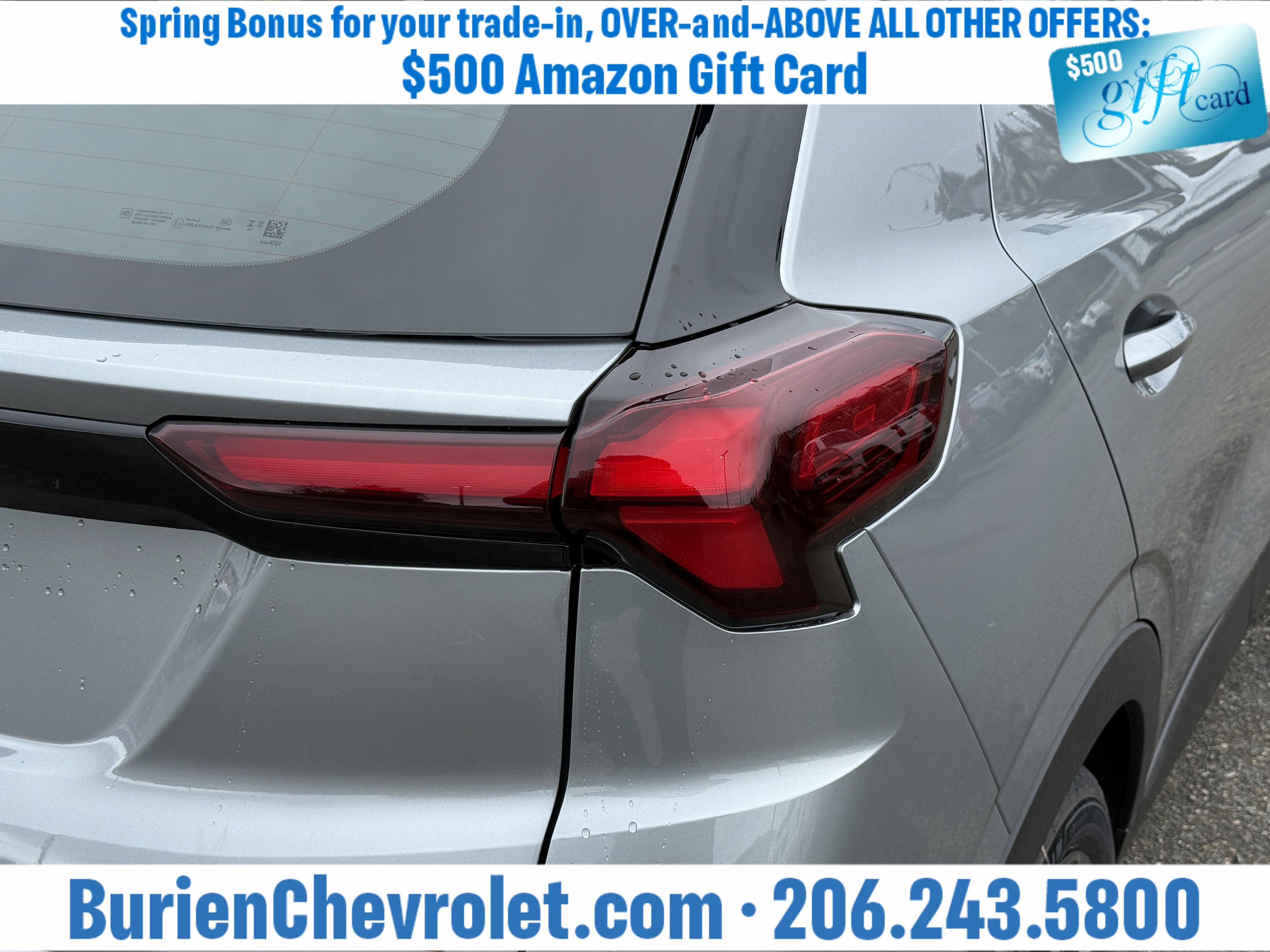Prices for vehicles as equipped do not include charges such as: License, Title, Registration Fees, State or Local Taxes, Finance Charges, Credit Investigation, Optional Credit Insurance, Physical Damage or Liability Insurance, Delivery Fees, or a negotiable $200 Documentary Services Fee. All photos and graphics for illustration purposes only. Where actual vehicle photos are not available, stock image representations may be displayed. Prototype features or options may be displayed. Dealership makes no representations, expressed or implied, to any actual or prospective purchaser or owner of vehicles as to the existence, ownership, accuracy, description or condition of vehicles' listed equipment, accessories, price or any warranties. Prices may include dealer installed options. Any and all differences must be addressed prior to the sales transaction. The Employee Discount for Everyone is not compatible with Lease offers. See Burien Chevrolet for details.