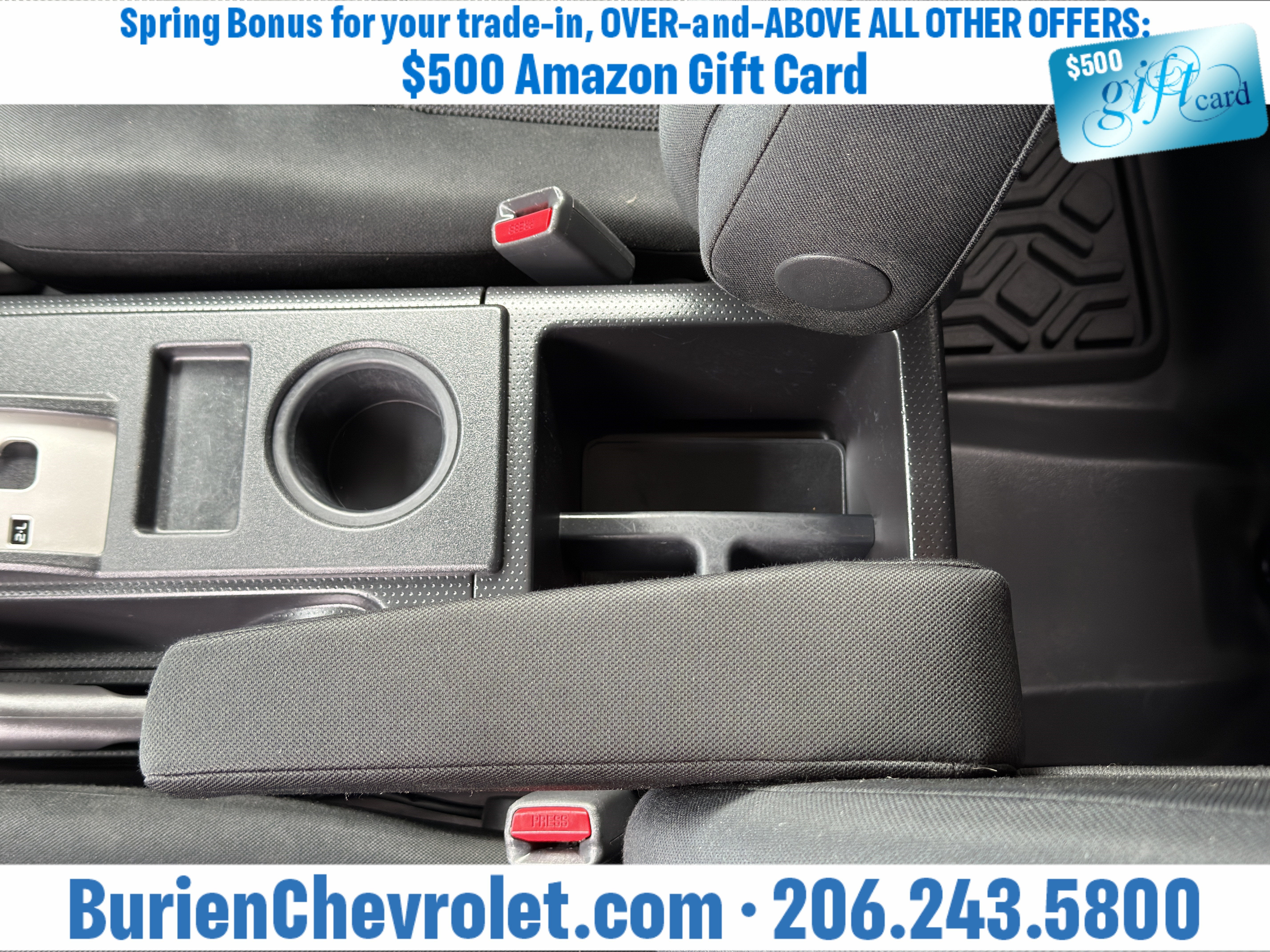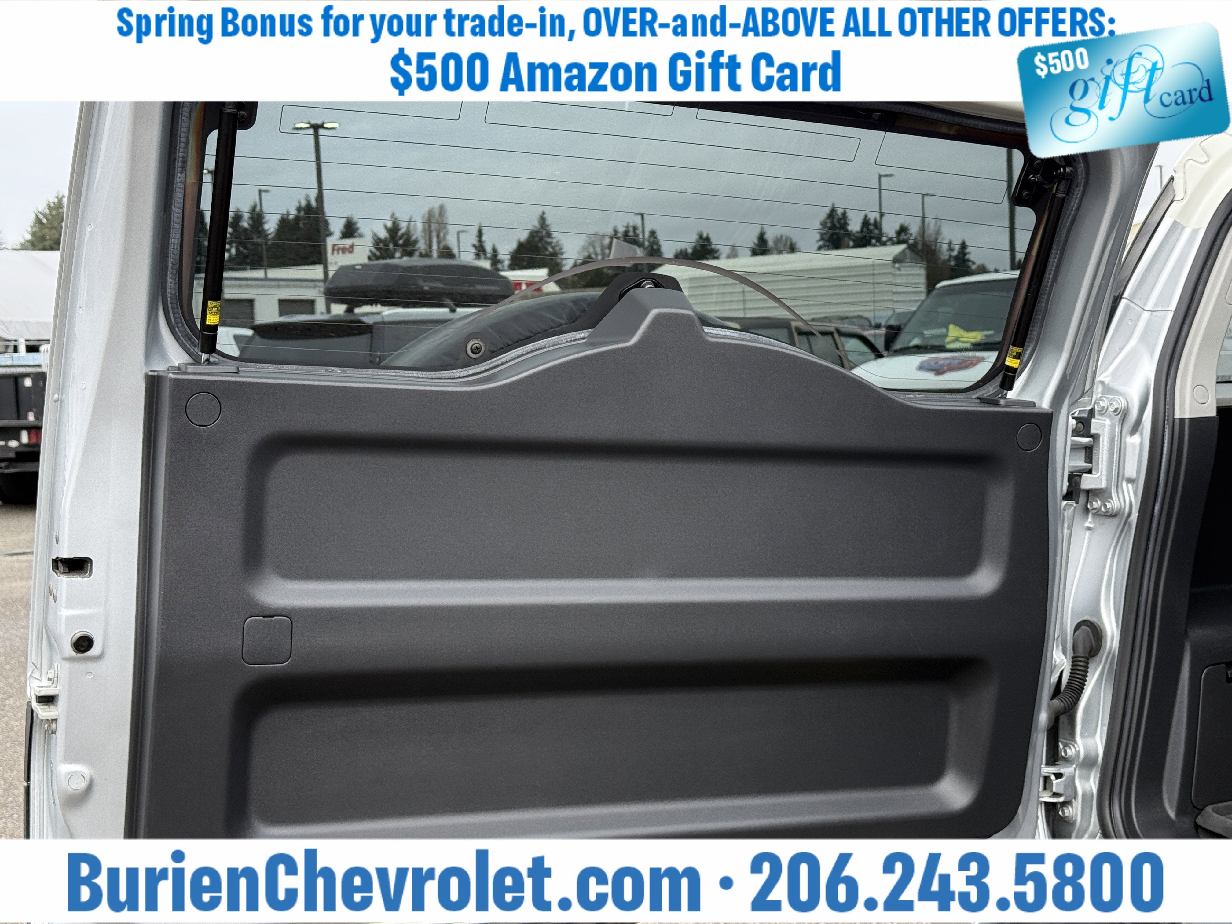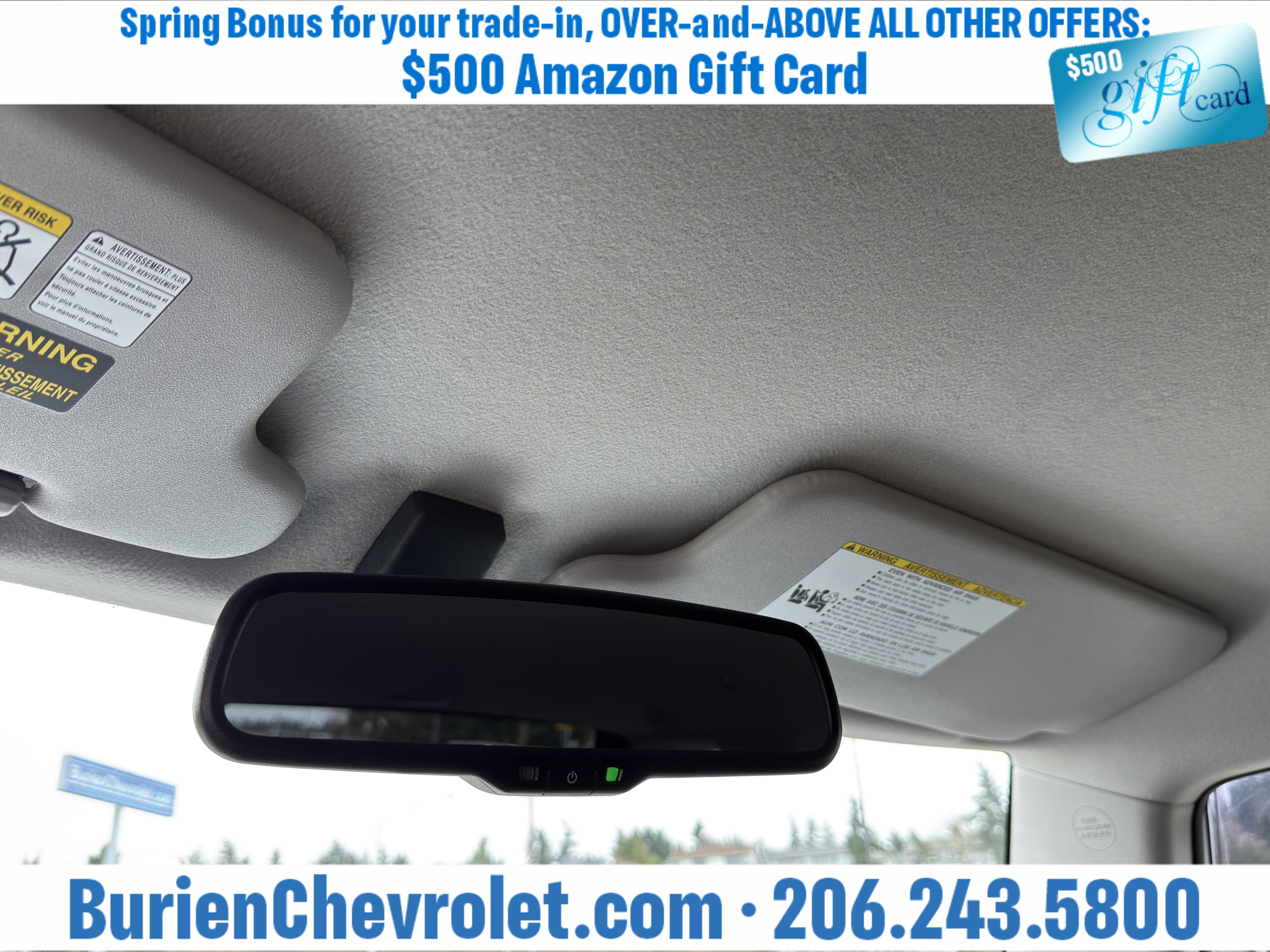 Prices for vehicles as equipped do not include charges such as: License, Title, Registration Fees, State or Local Taxes, Finance Charges, Credit Investigation, Optional Credit Insurance, Physical Damage or Liability Insurance, Delivery Fees, or a negotiable $200 Documentary Services Fee. All photos and graphics for illustration purposes only. Where actual vehicle photos are not available, stock image representations may be displayed. Prototype features or options may be displayed. Dealership makes no representations, expressed or implied, to any actual or prospective purchaser or owner of vehicles as to the existence, ownership, accuracy, description or condition of vehicles' listed equipment, accessories, price or any warranties. Prices may include dealer installed options. Any and all differences must be addressed prior to the sales transaction. The Employee Discount for Everyone is not compatible with Lease offers. See Burien Chevrolet for details.