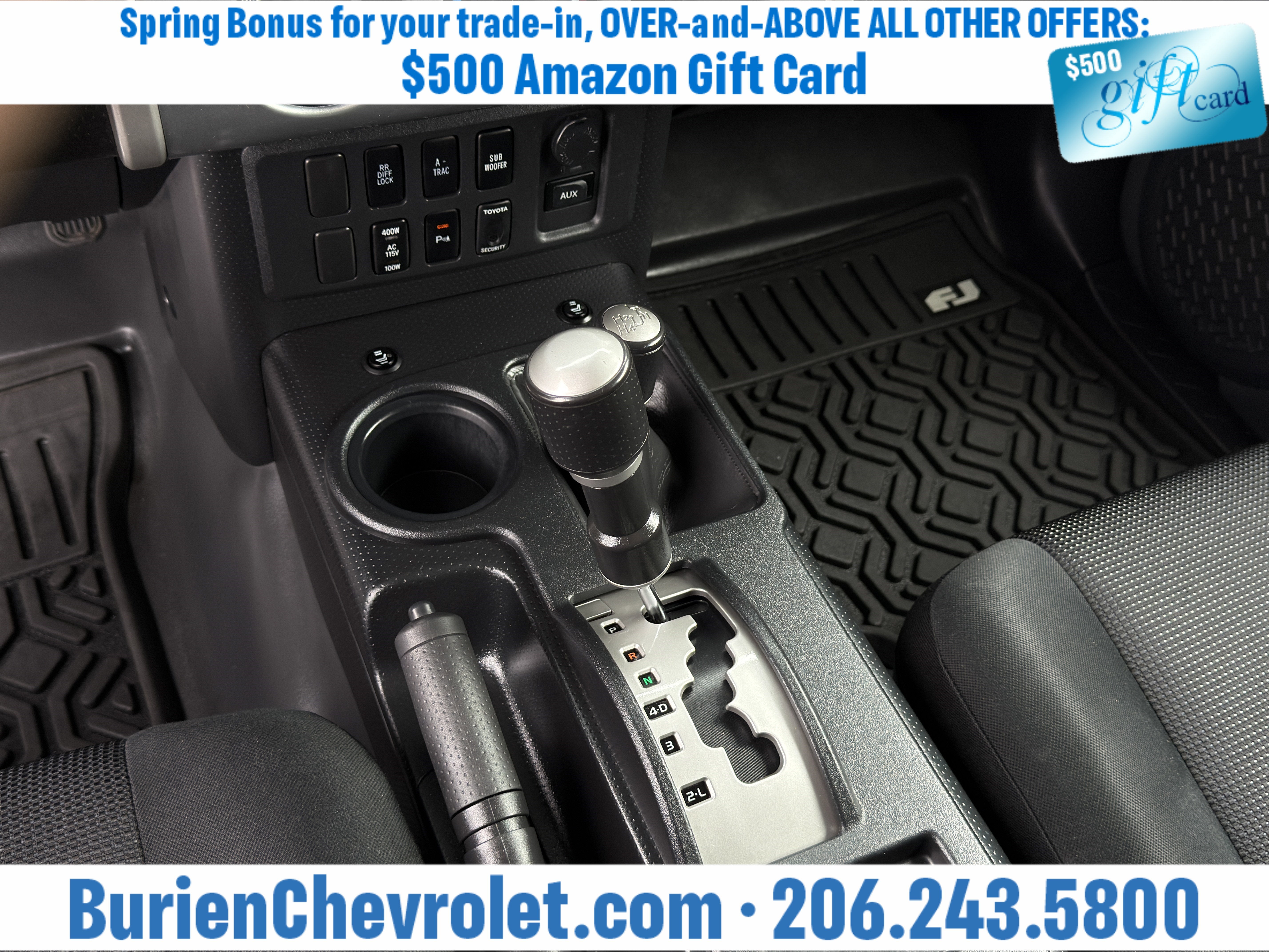 Not only is this FJ a one-owner, accident-free, salt-free rig, but it was well-packaged when new and includes heated front seats, rear backup camera, locking rear diff, Toyota's fancy sensor-based security system, as well as the JBL premium audio with rear-mounted subwoofer.