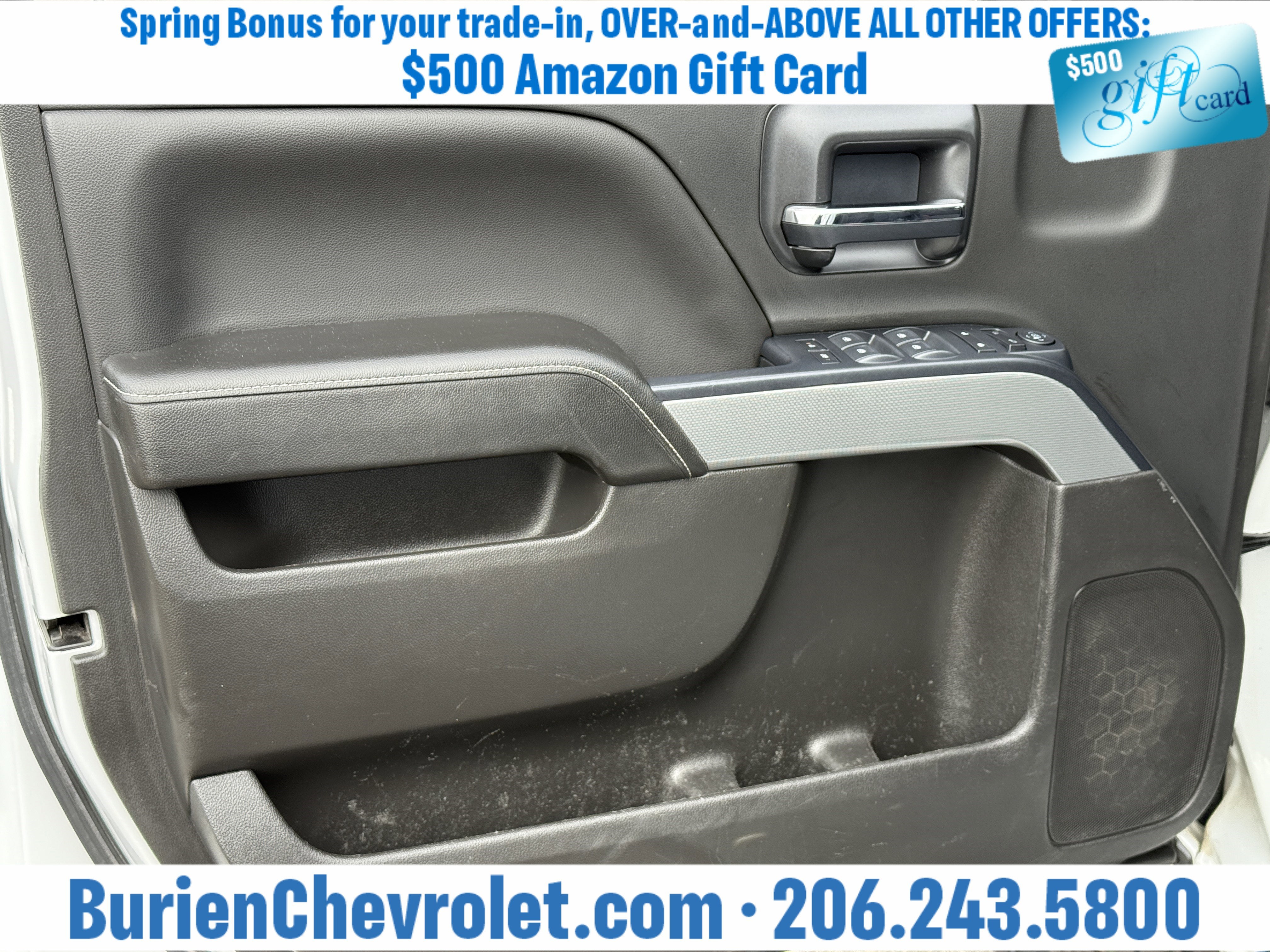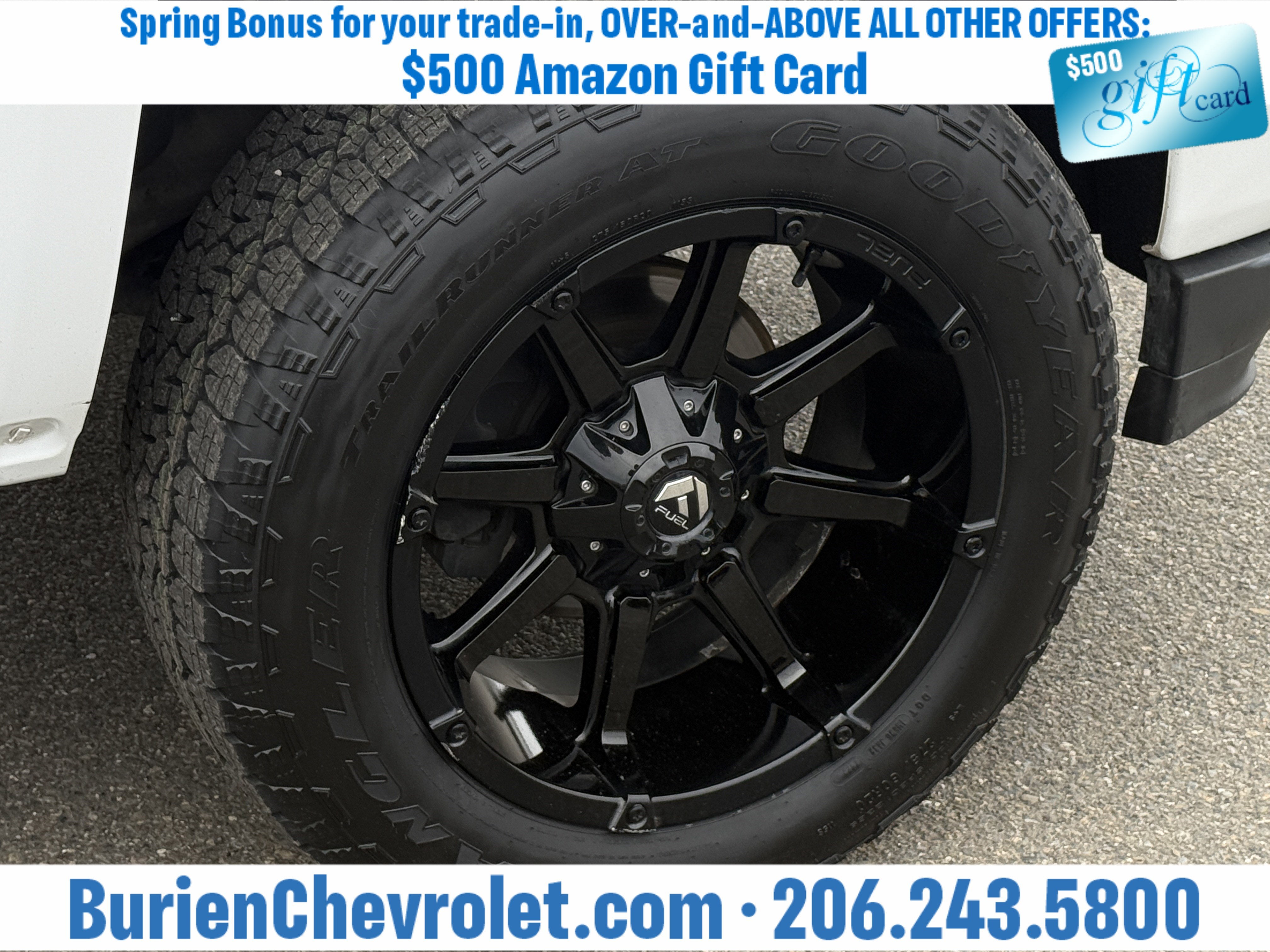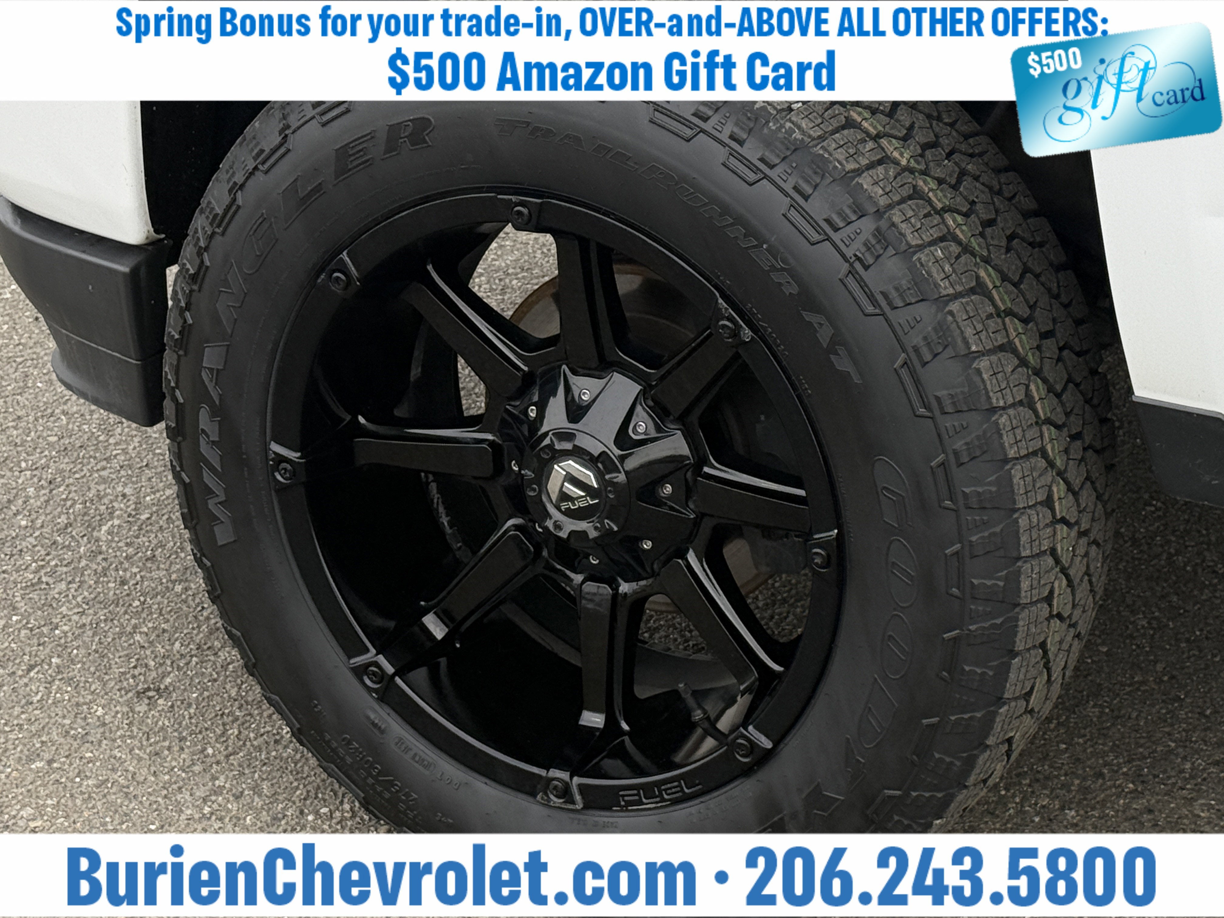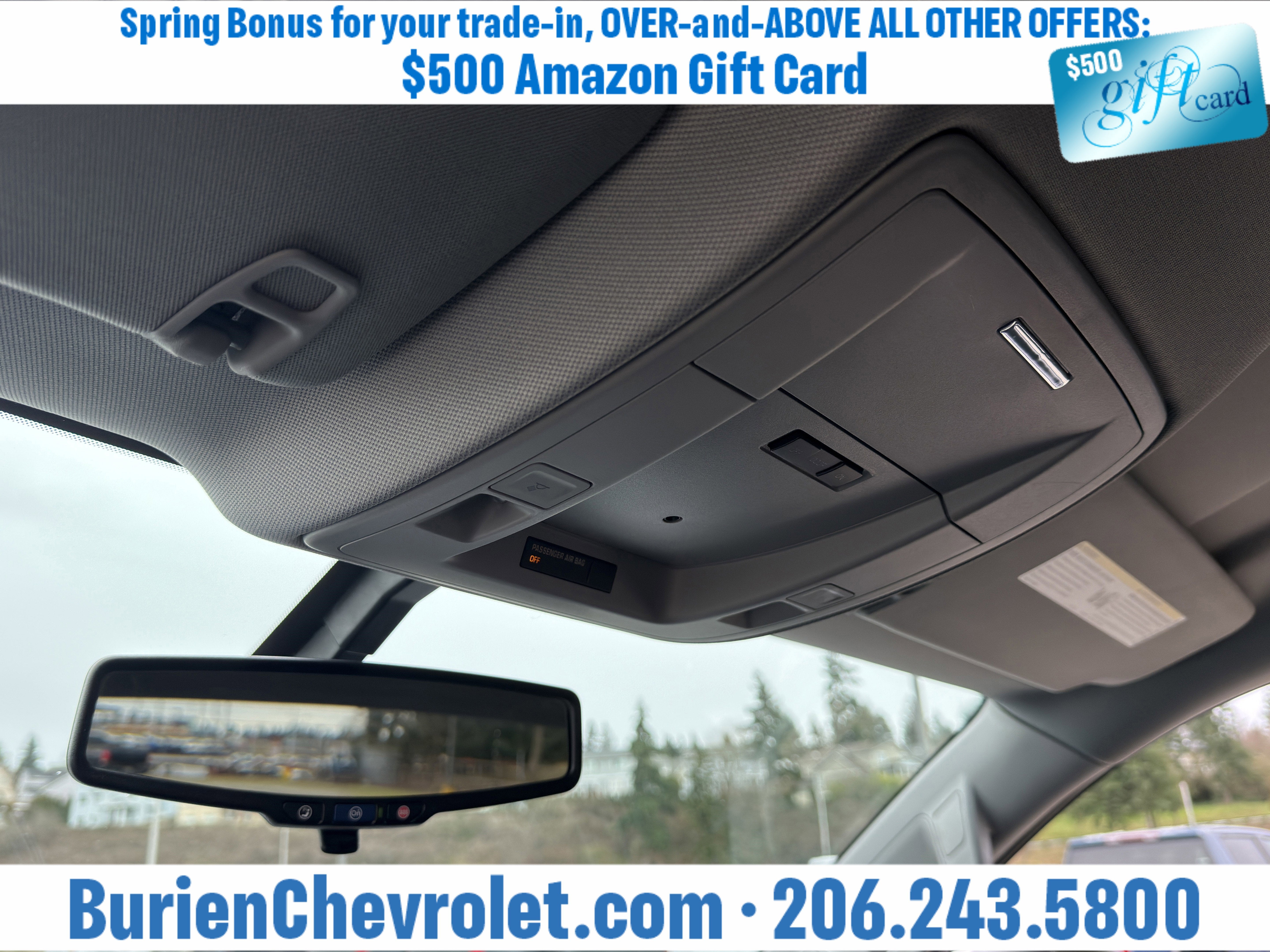 Prices for vehicles as equipped do not include charges such as: License, Title, Registration Fees, State or Local Taxes, Finance Charges, Credit Investigation, Optional Credit Insurance, Physical Damage or Liability Insurance, Delivery Fees, or a negotiable $200 Documentary Services Fee. All photos and graphics for illustration purposes only. Where actual vehicle photos are not available, stock image representations may be displayed. Prototype features or options may be displayed. Dealership makes no representations, expressed or implied, to any actual or prospective purchaser or owner of vehicles as to the existence, ownership, accuracy, description or condition of vehicles' listed equipment, accessories, price or any warranties. Prices may include dealer installed options. Any and all differences must be addressed prior to the sales transaction. The Employee Discount for Everyone is not compatible with Lease offers. See Burien Chevrolet for details.