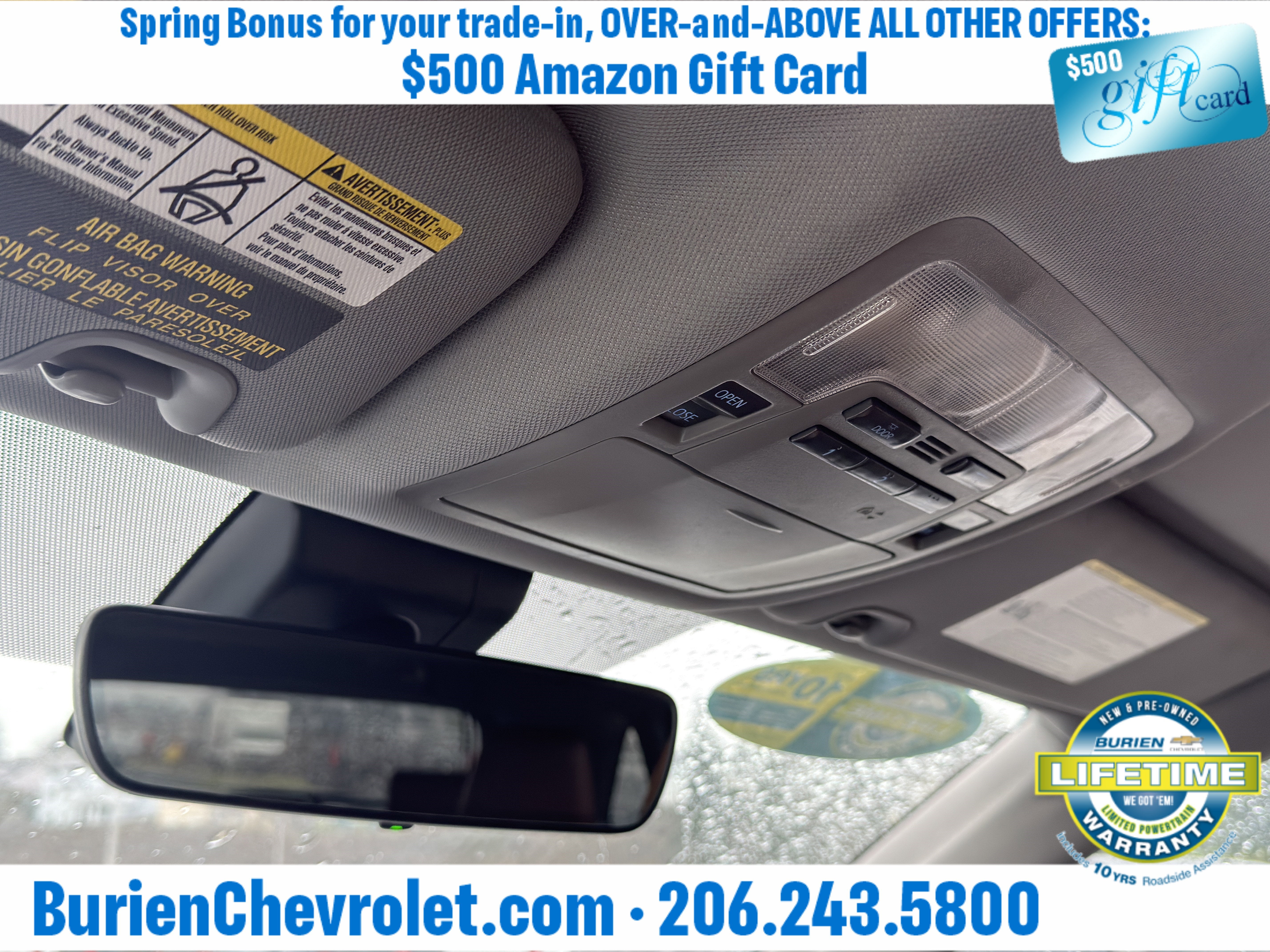 Prices for vehicles as equipped do not include charges such as: License, Title, Registration Fees, State or Local Taxes, Finance Charges, Credit Investigation, Optional Credit Insurance, Physical Damage or Liability Insurance, Delivery Fees, or a negotiable $200 Documentary Services Fee. All photos and graphics for illustration purposes only. Where actual vehicle photos are not available, stock image representations may be displayed. Prototype features or options may be displayed. Dealership makes no representations, expressed or implied, to any actual or prospective purchaser or owner of vehicles as to the existence, ownership, accuracy, description or condition of vehicles' listed equipment, accessories, price or any warranties. Prices may include dealer installed options. Any and all differences must be addressed prior to the sales transaction. The Employee Discount for Everyone is not compatible with Lease offers. See Burien Chevrolet for details.