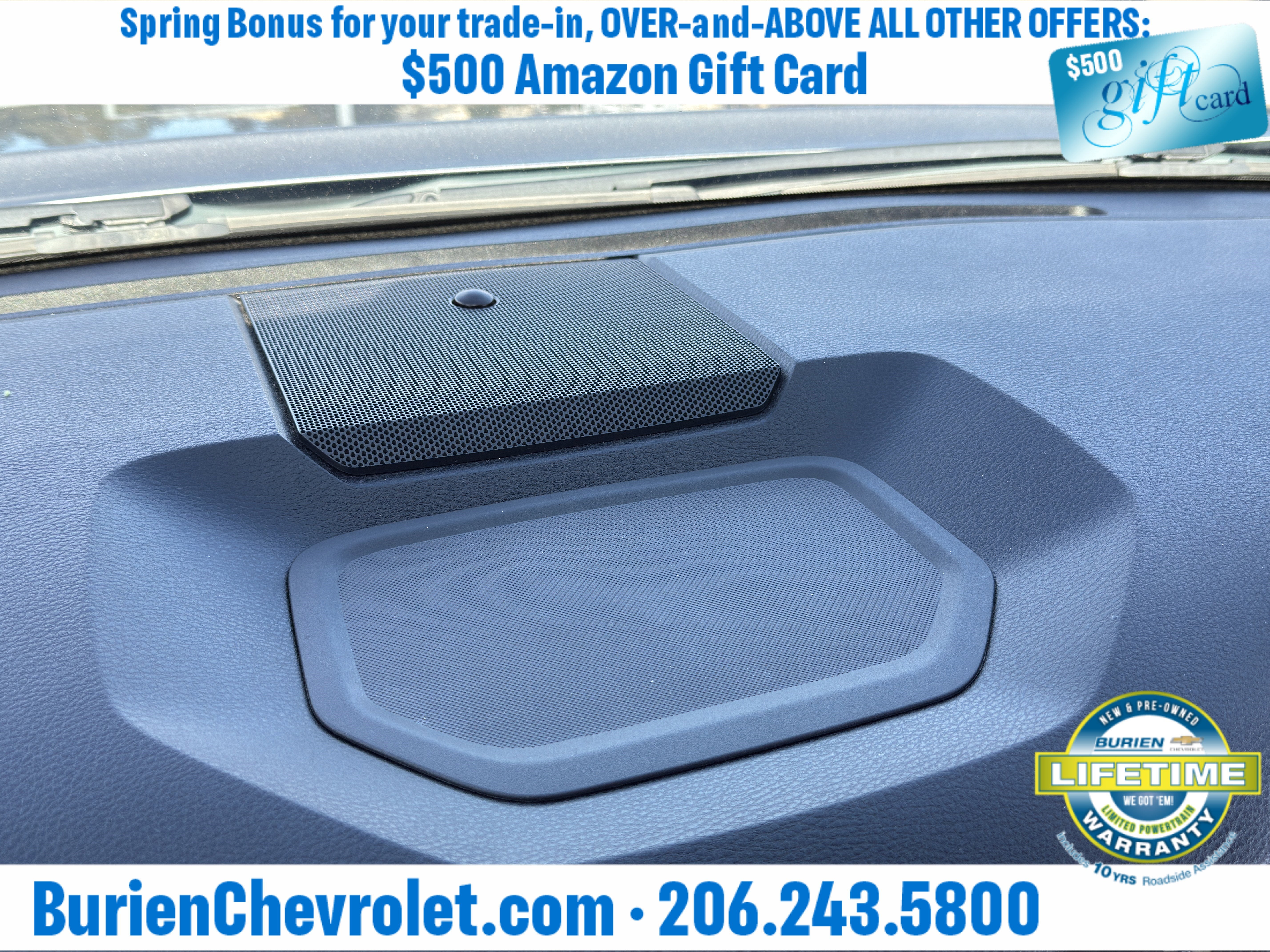 Prices for vehicles as equipped do not include charges such as: License, Title, Registration Fees, State or Local Taxes, Finance Charges, Credit Investigation, Optional Credit Insurance, Physical Damage or Liability Insurance, Delivery Fees, or a negotiable $200 Documentary Services Fee. All photos and graphics for illustration purposes only. Where actual vehicle photos are not available, stock image representations may be displayed. Prototype features or options may be displayed. Dealership makes no representations, expressed or implied, to any actual or prospective purchaser or owner of vehicles as to the existence, ownership, accuracy, description or condition of vehicles' listed equipment, accessories, price or any warranties. Prices may include dealer installed options. Any and all differences must be addressed prior to the sales transaction. The Employee Discount for Everyone is not compatible with Lease offers. See Burien Chevrolet for details.