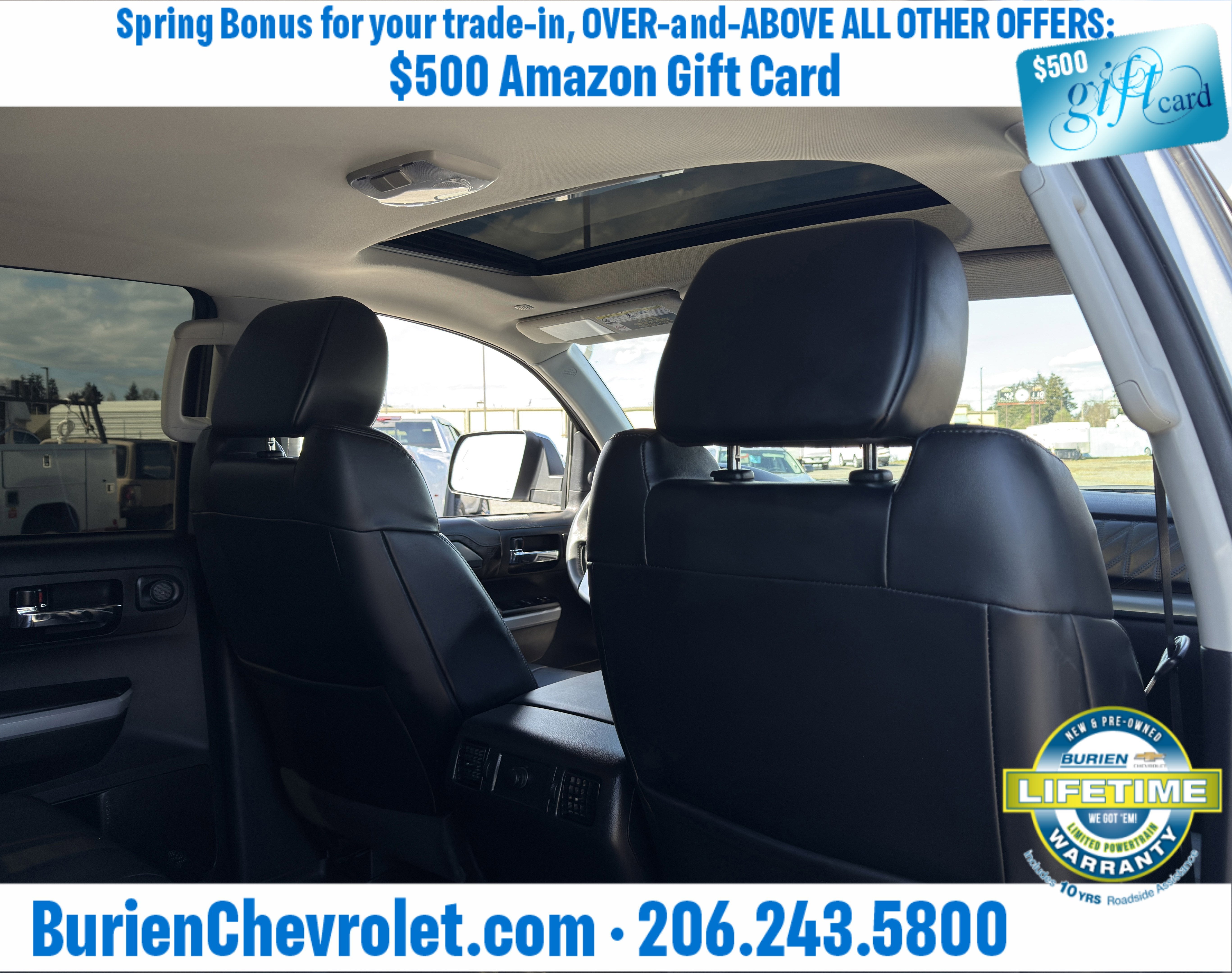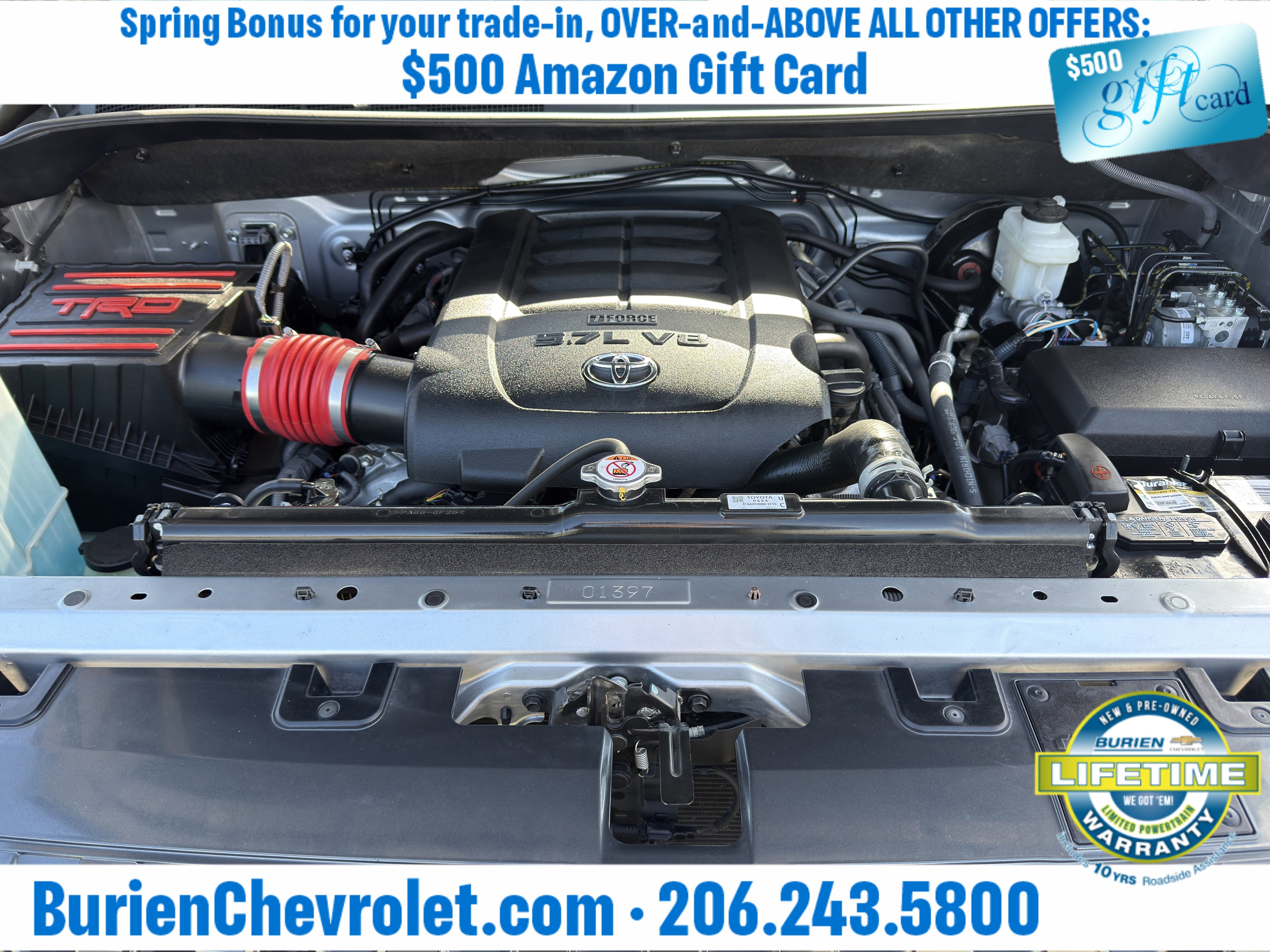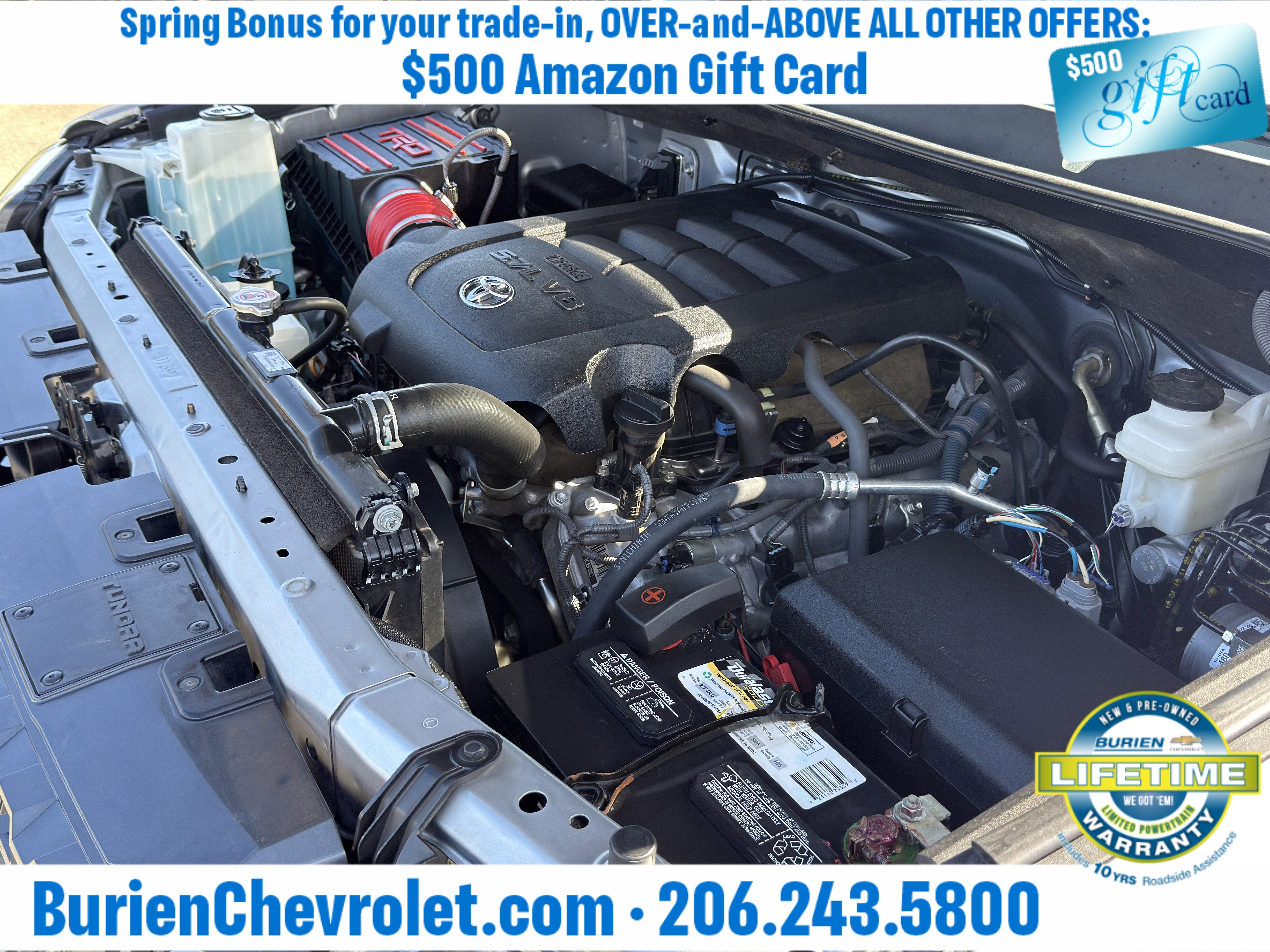 5.7L i-FORCE V8 DOHC 32V with Dual Independent VVT-i 381 hp/401 lb-ft 6-Spd Automatic Trans w/Sequential Shift 4WDemand Part-Time 4WD w/Elec Controlled Transfer Case & A-TRAC Tow Package: Tow Rcvr Hitch, 4.30 Axle, Eng/Trans Fluid Coolers, TOW/HAUL Mode, HD Batt & Alt, & Integ 4/7-Pin Connector Automatic Limited-Slip Differential