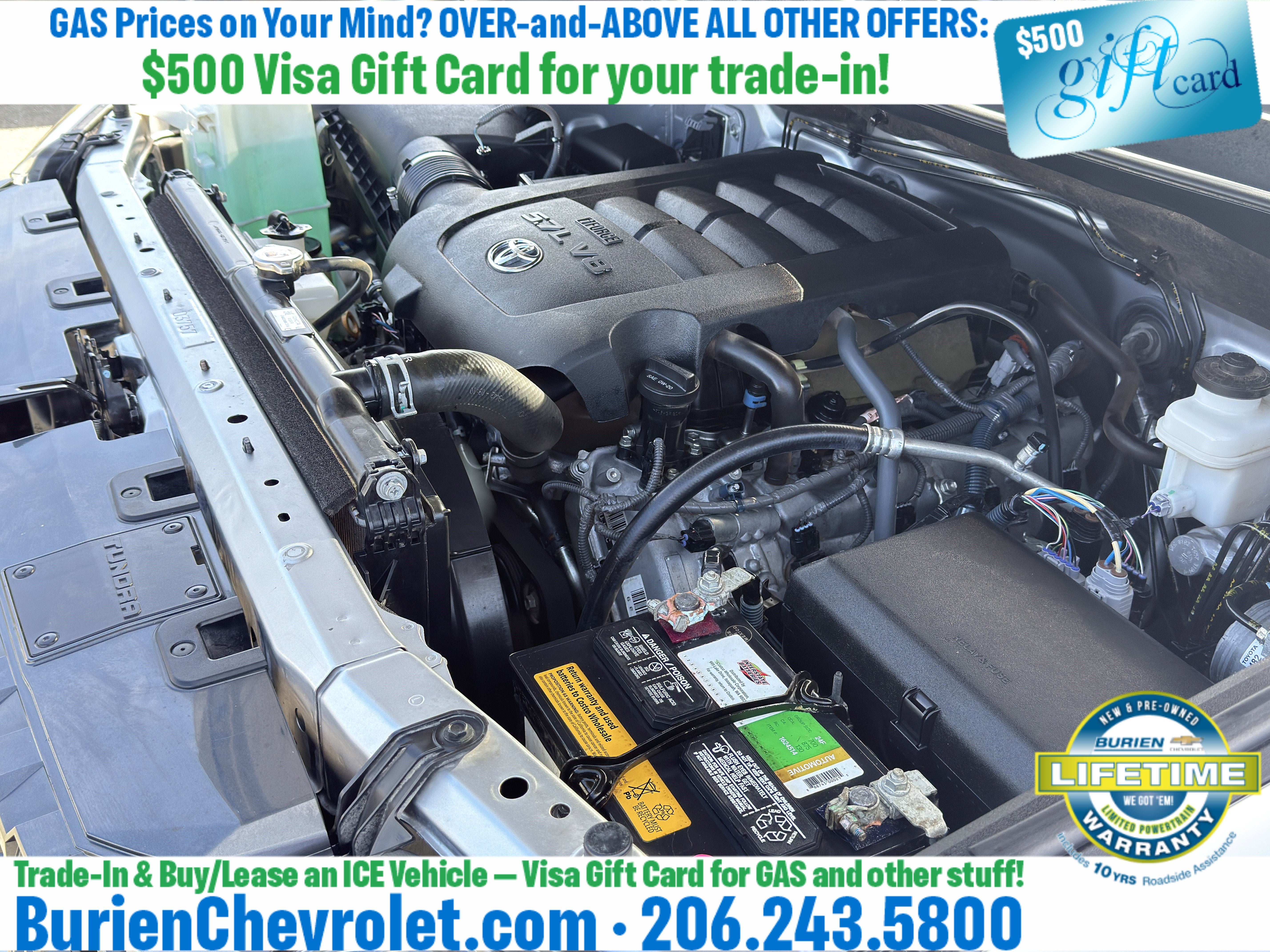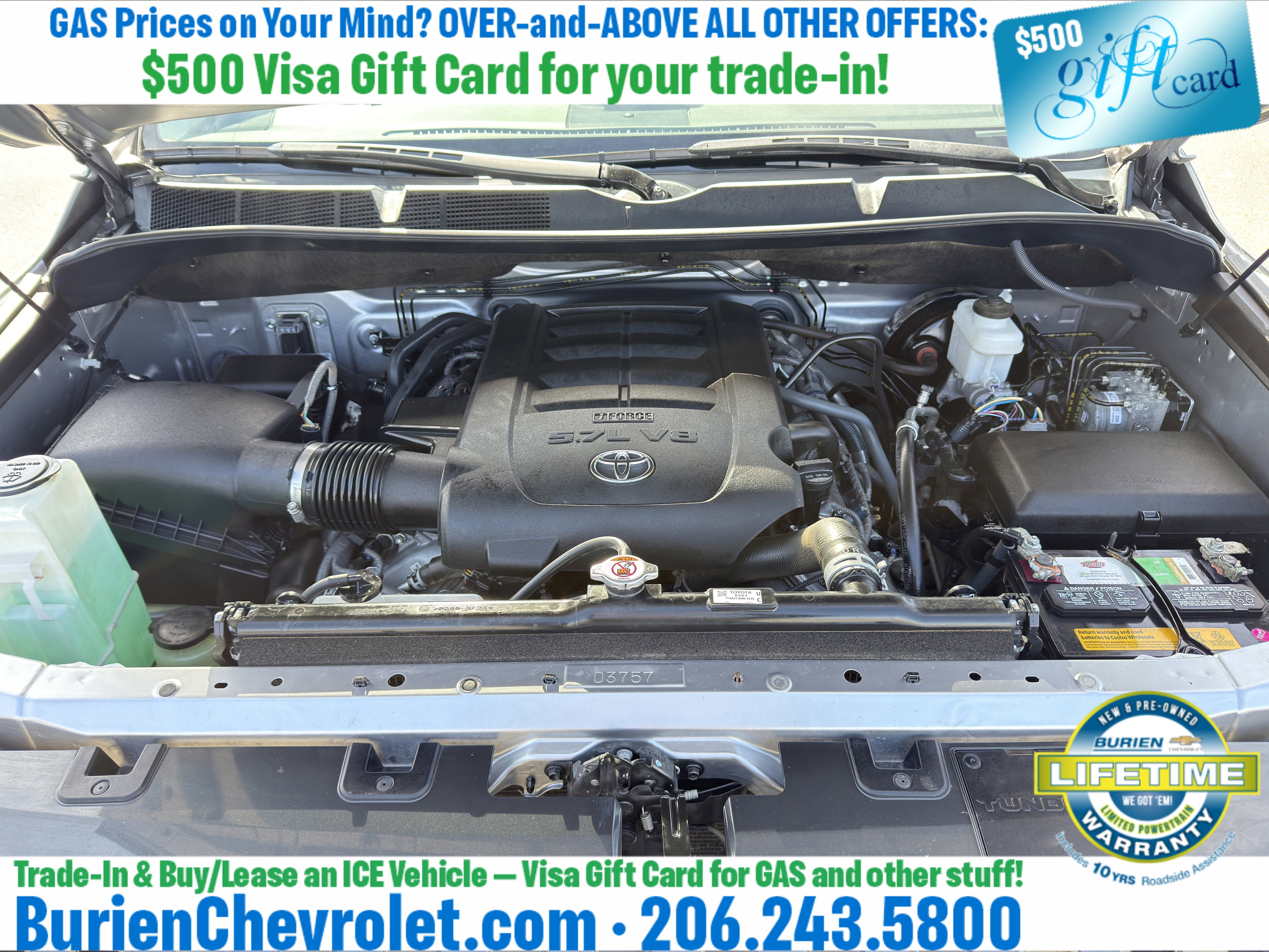5.7L i-FORCE V8 DOHC 32V with Dual Independent VVT-i 381 hp/401 lb-ft 6-Spd Automatic Trans w/Sequential Shift 4WDemand Part-Time 4WD w/Elec Controlled Transfer Case & A-TRAC Tow Package: Tow Rcvr Hitch, 4.30 Axle, Eng/Trans Fluid Coolers, TOW/HAUL Mode, HD Batt & Alt, & Integ 4/7-Pin Connector Automatic Limited-Slip Differential