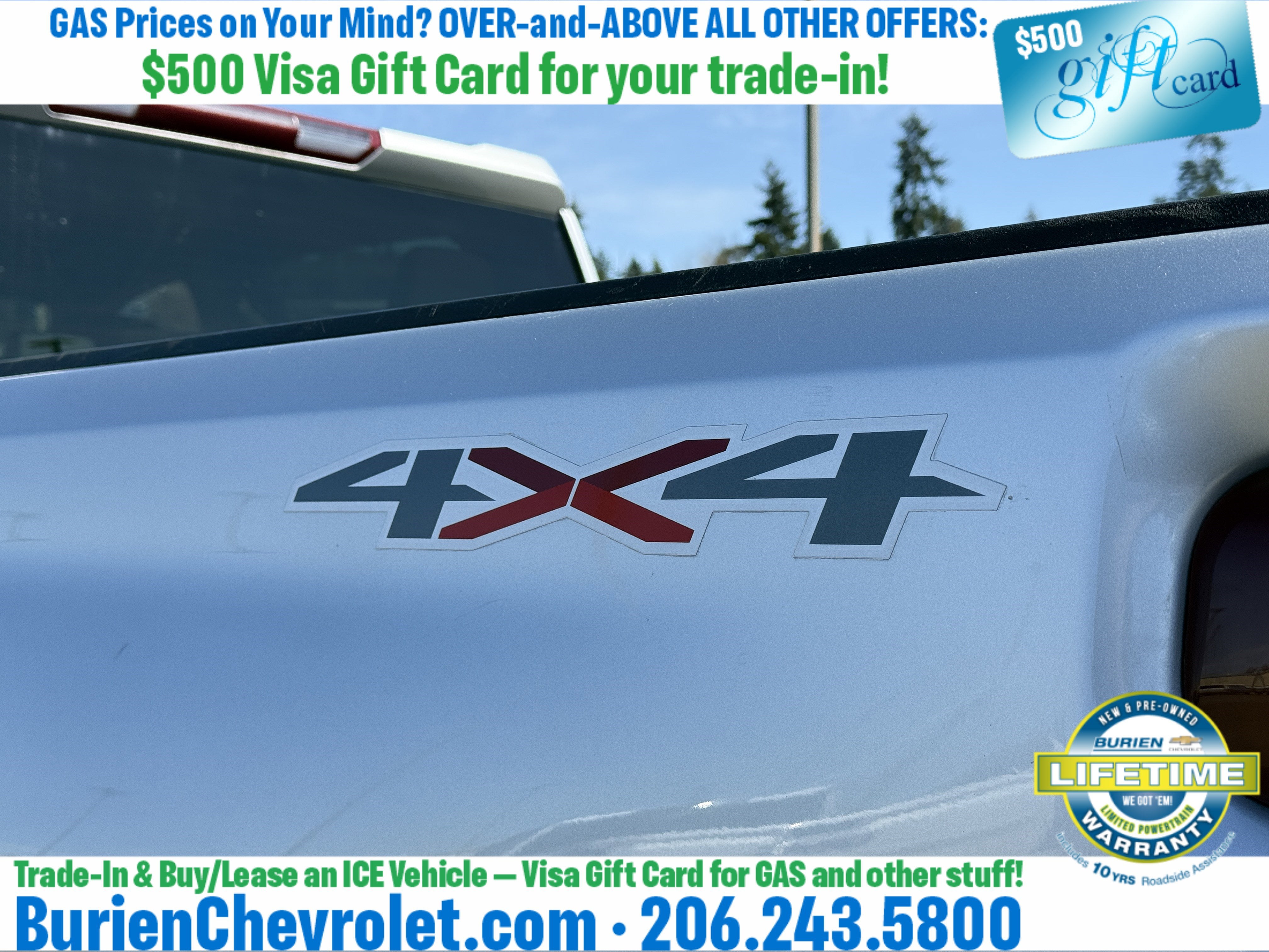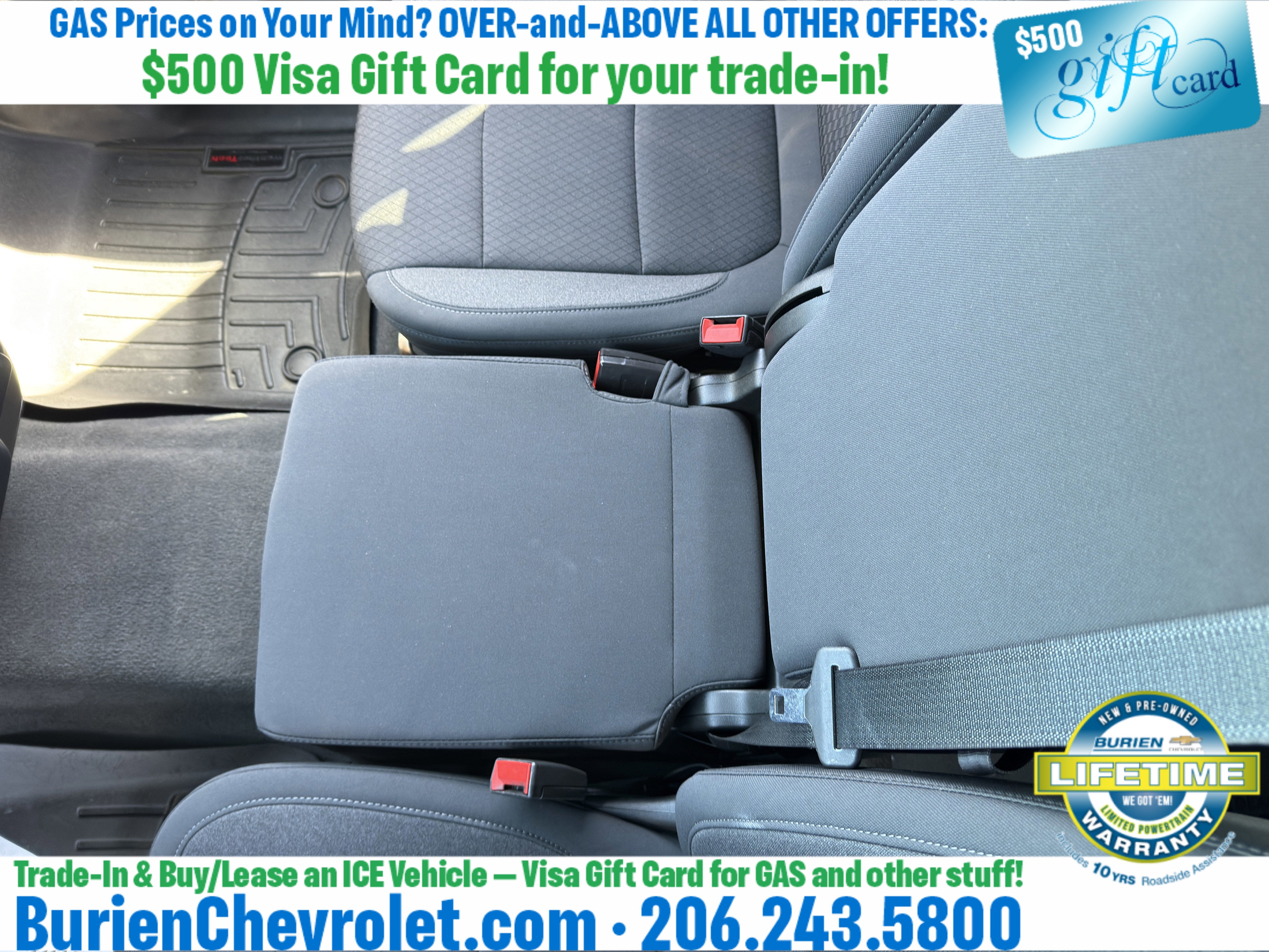 Prices for vehicles as equipped do not include charges such as: License, Title, Registration Fees, State or Local Taxes, Finance Charges, Credit Investigation, Optional Credit Insurance, Physical Damage or Liability Insurance, Delivery Fees, or a negotiable $200 Documentary Services Fee. All photos and graphics for illustration purposes only. Where actual vehicle photos are not available, stock image representations may be displayed. Prototype features or options may be displayed. Dealership makes no representations, expressed or implied, to any actual or prospective purchaser or owner of vehicles as to the existence, ownership, accuracy, description or condition of vehicles' listed equipment, accessories, price or any warranties. Prices may include dealer installed options. Any and all differences must be addressed prior to the sales transaction. The Employee Discount for Everyone is not compatible with Lease offers. See Burien Chevrolet for details.