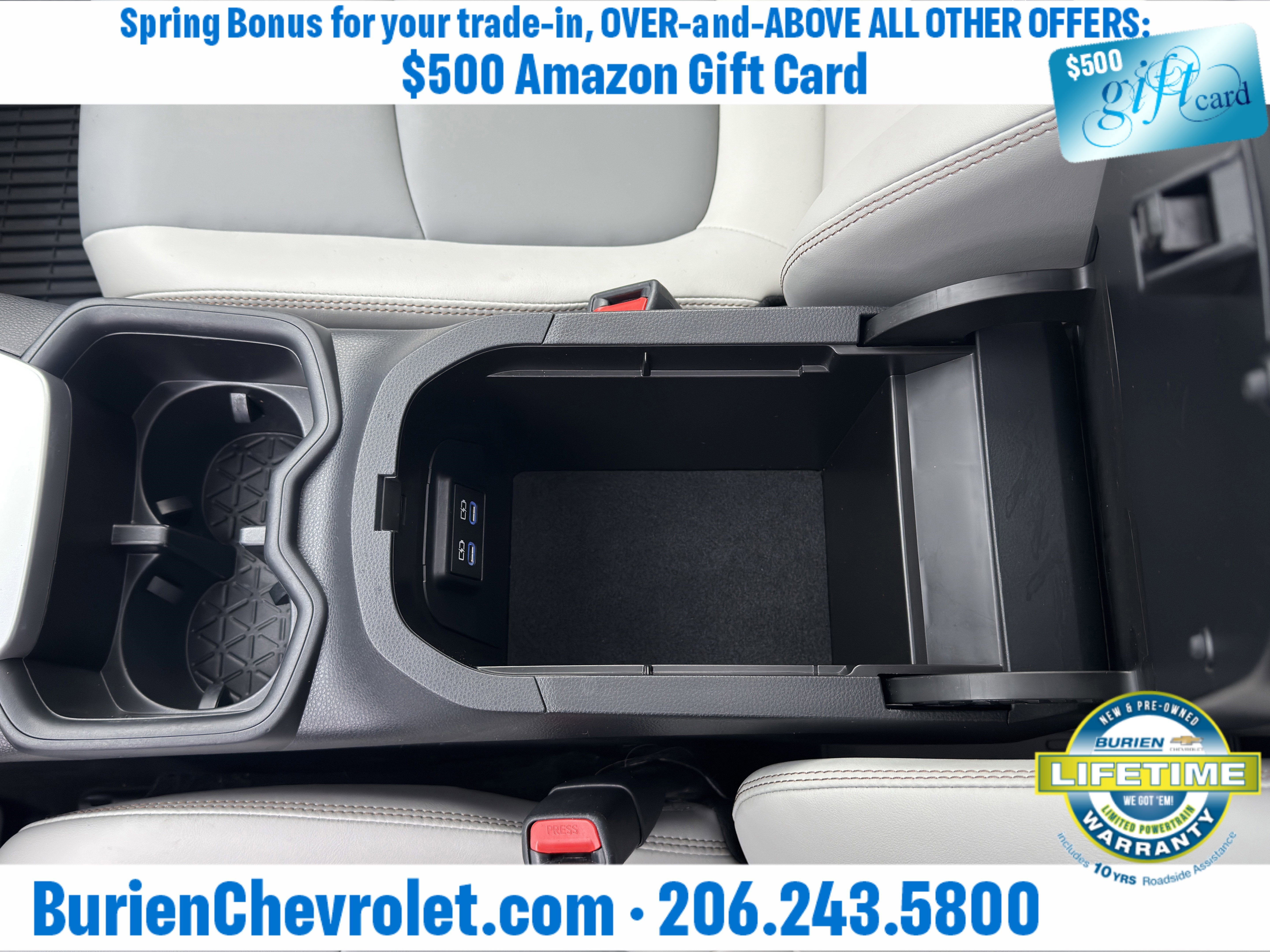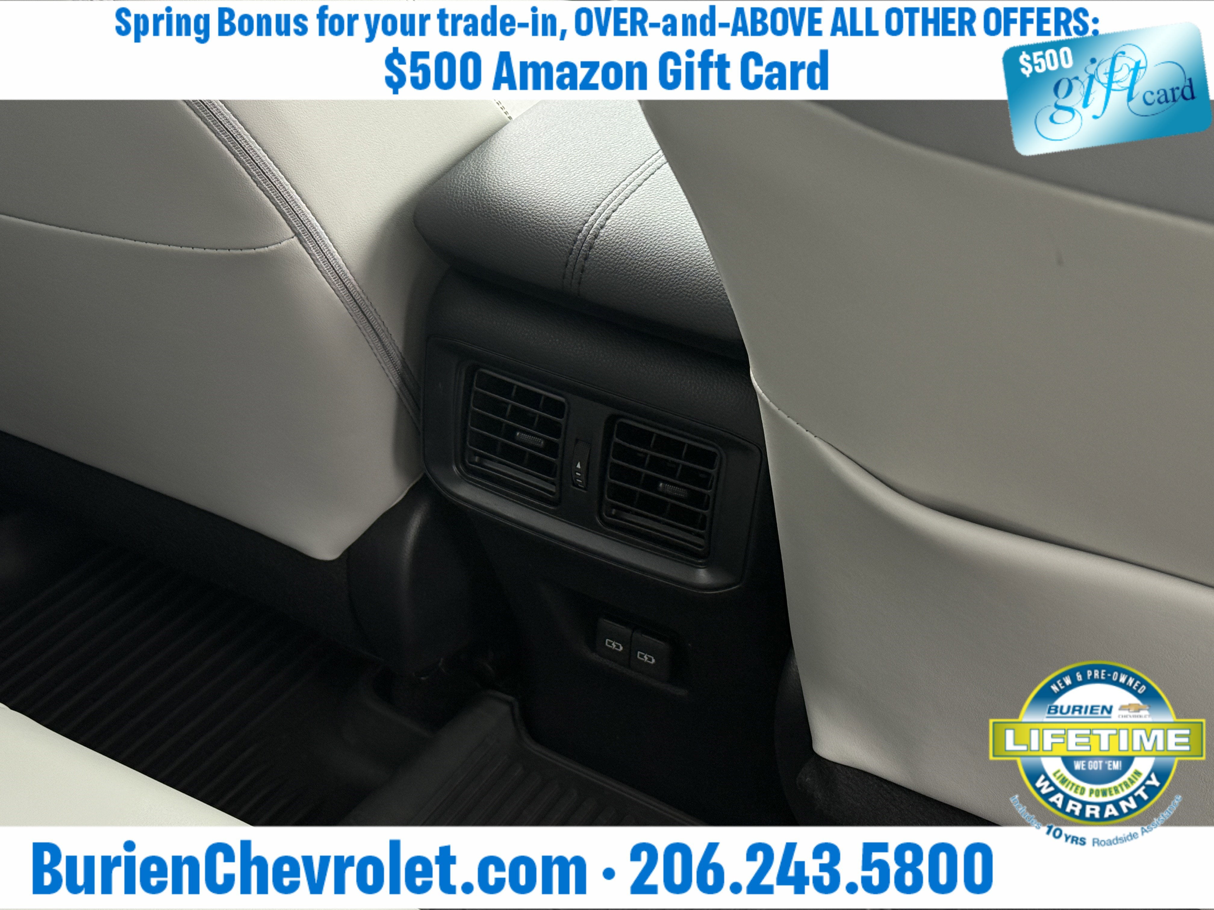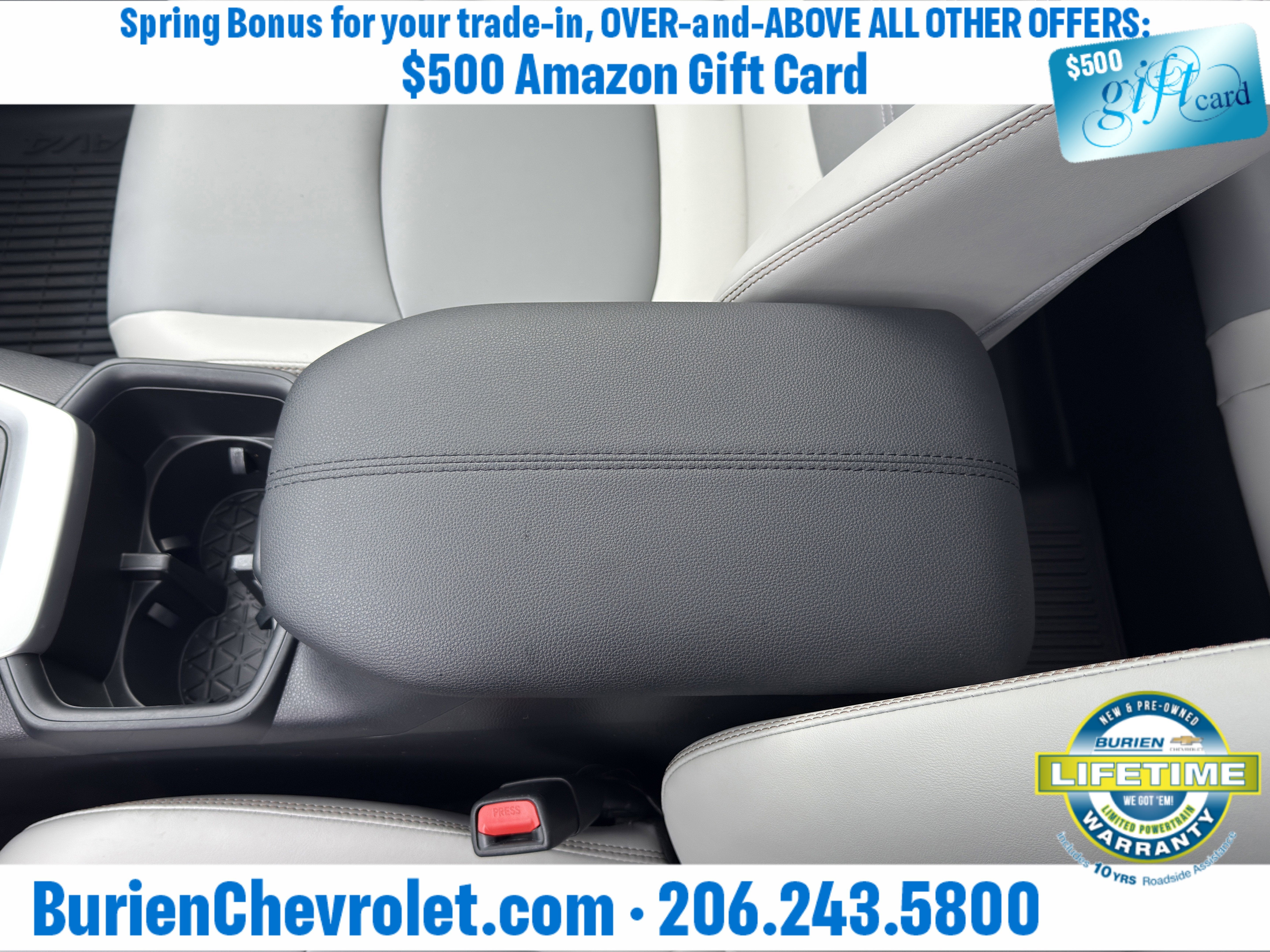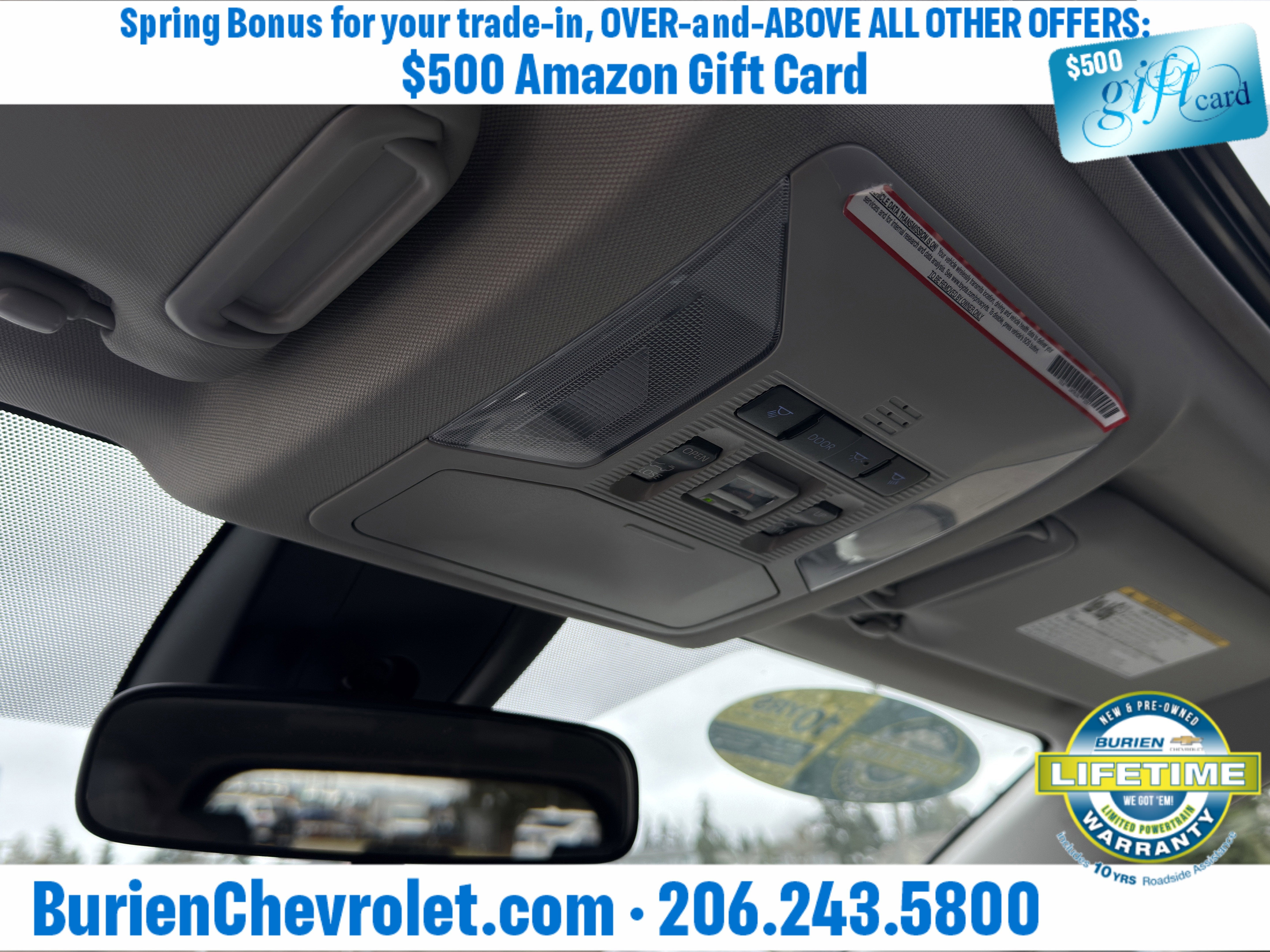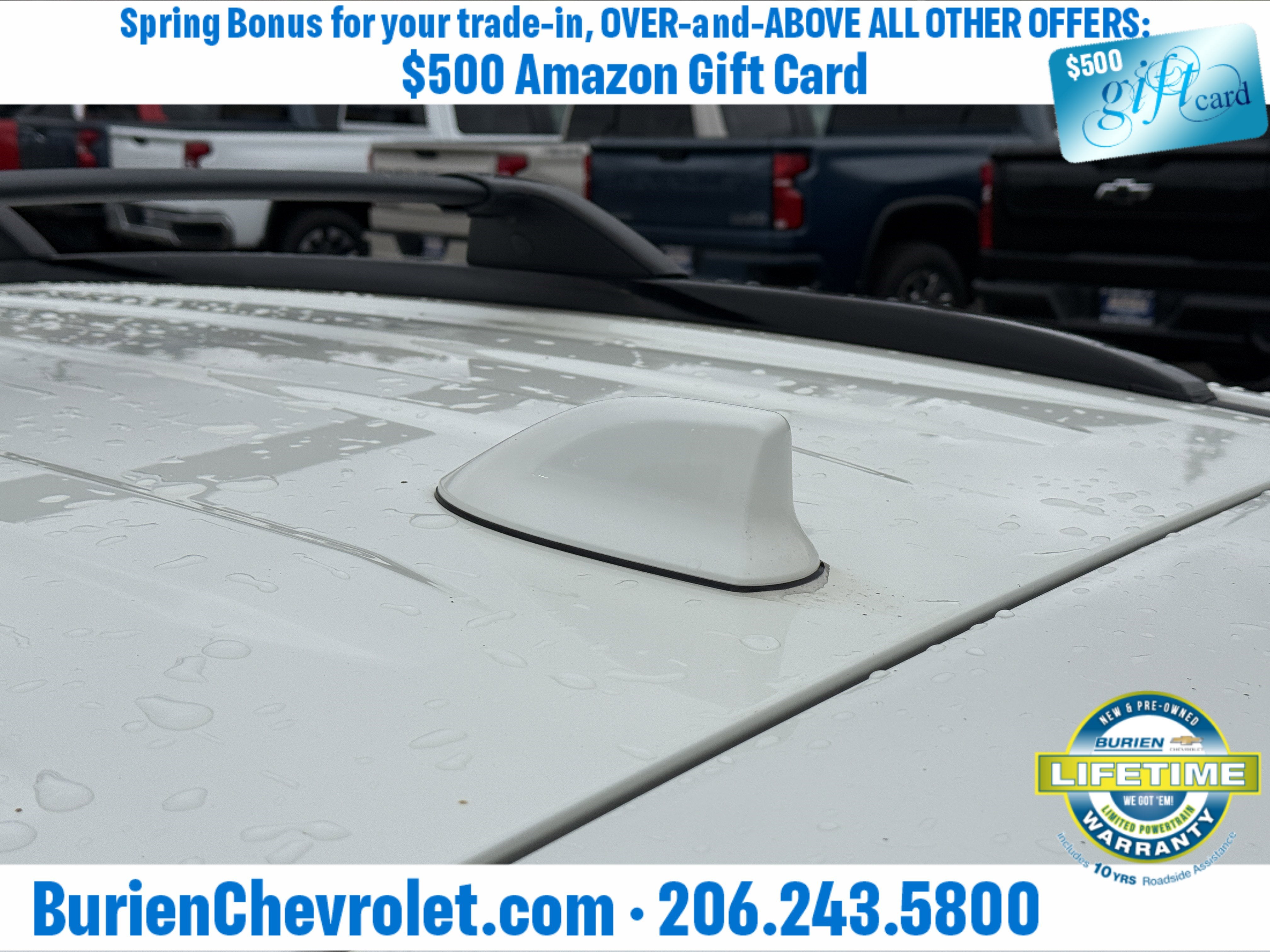 Prices for vehicles as equipped do not include charges such as: License, Title, Registration Fees, State or Local Taxes, Finance Charges, Credit Investigation, Optional Credit Insurance, Physical Damage or Liability Insurance, Delivery Fees, or a negotiable $200 Documentary Services Fee. All photos and graphics for illustration purposes only. Where actual vehicle photos are not available, stock image representations may be displayed. Prototype features or options may be displayed. Dealership makes no representations, expressed or implied, to any actual or prospective purchaser or owner of vehicles as to the existence, ownership, accuracy, description or condition of vehicles' listed equipment, accessories, price or any warranties. Prices may include dealer installed options. Any and all differences must be addressed prior to the sales transaction. The Employee Discount for Everyone is not compatible with Lease offers. See Burien Chevrolet for details.