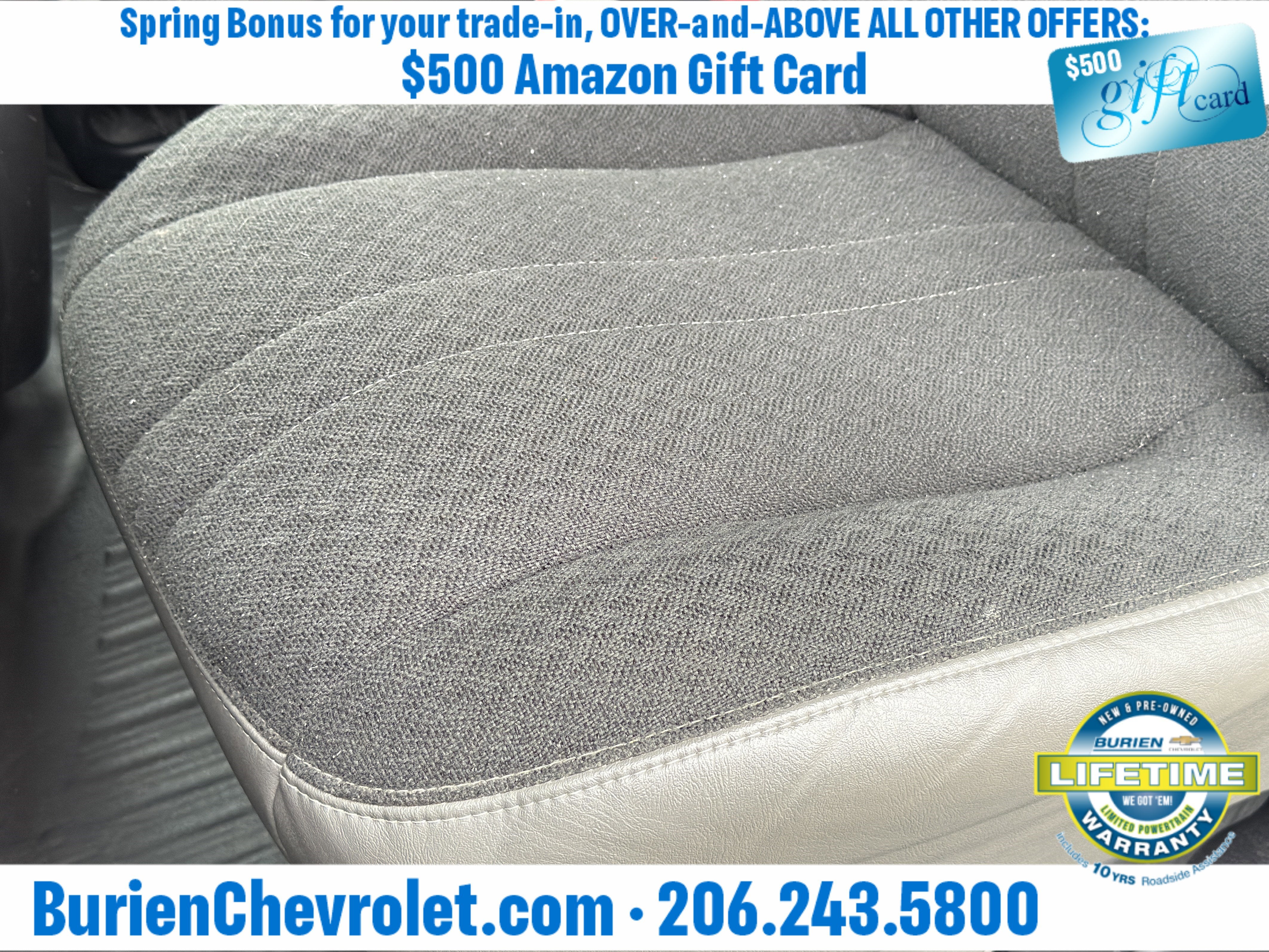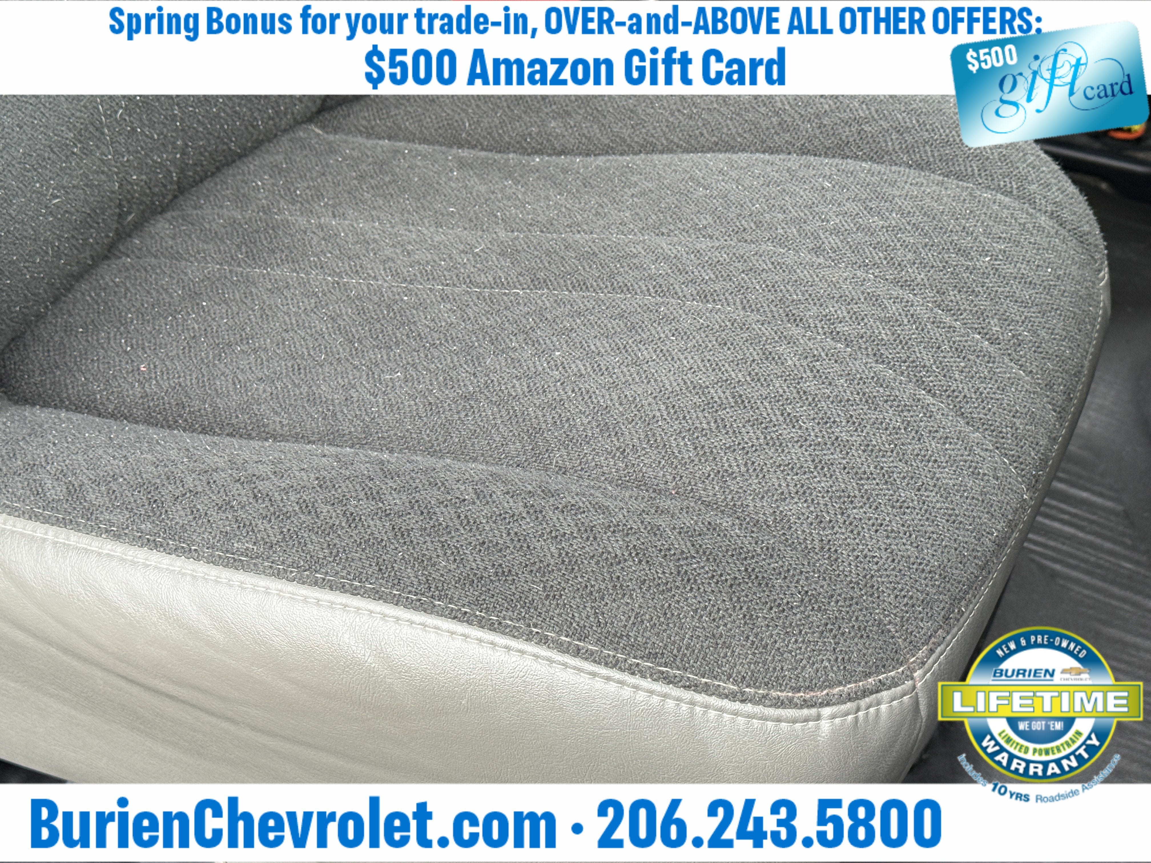 Prices for vehicles as equipped do not include charges such as: License, Title, Registration Fees, State or Local Taxes, Finance Charges, Credit Investigation, Optional Credit Insurance, Physical Damage or Liability Insurance, Delivery Fees, or a negotiable $200 Documentary Services Fee. All photos and graphics for illustration purposes only. Where actual vehicle photos are not available, stock image representations may be displayed. Prototype features or options may be displayed. Dealership makes no representations, expressed or implied, to any actual or prospective purchaser or owner of vehicles as to the existence, ownership, accuracy, description or condition of vehicles' listed equipment, accessories, price or any warranties. Prices may include dealer installed options. Any and all differences must be addressed prior to the sales transaction. The Employee Discount for Everyone is not compatible with Lease offers. See Burien Chevrolet for details.