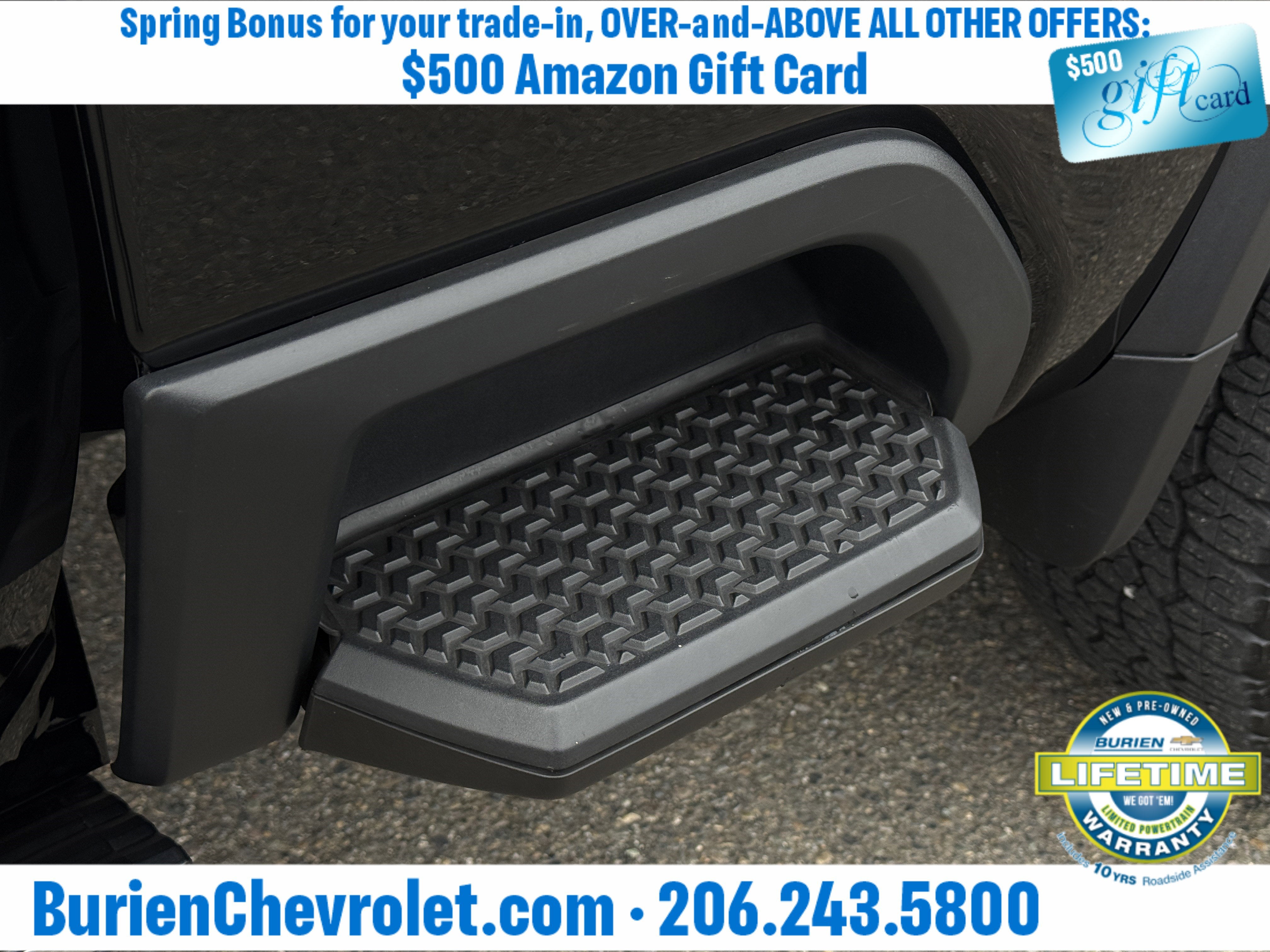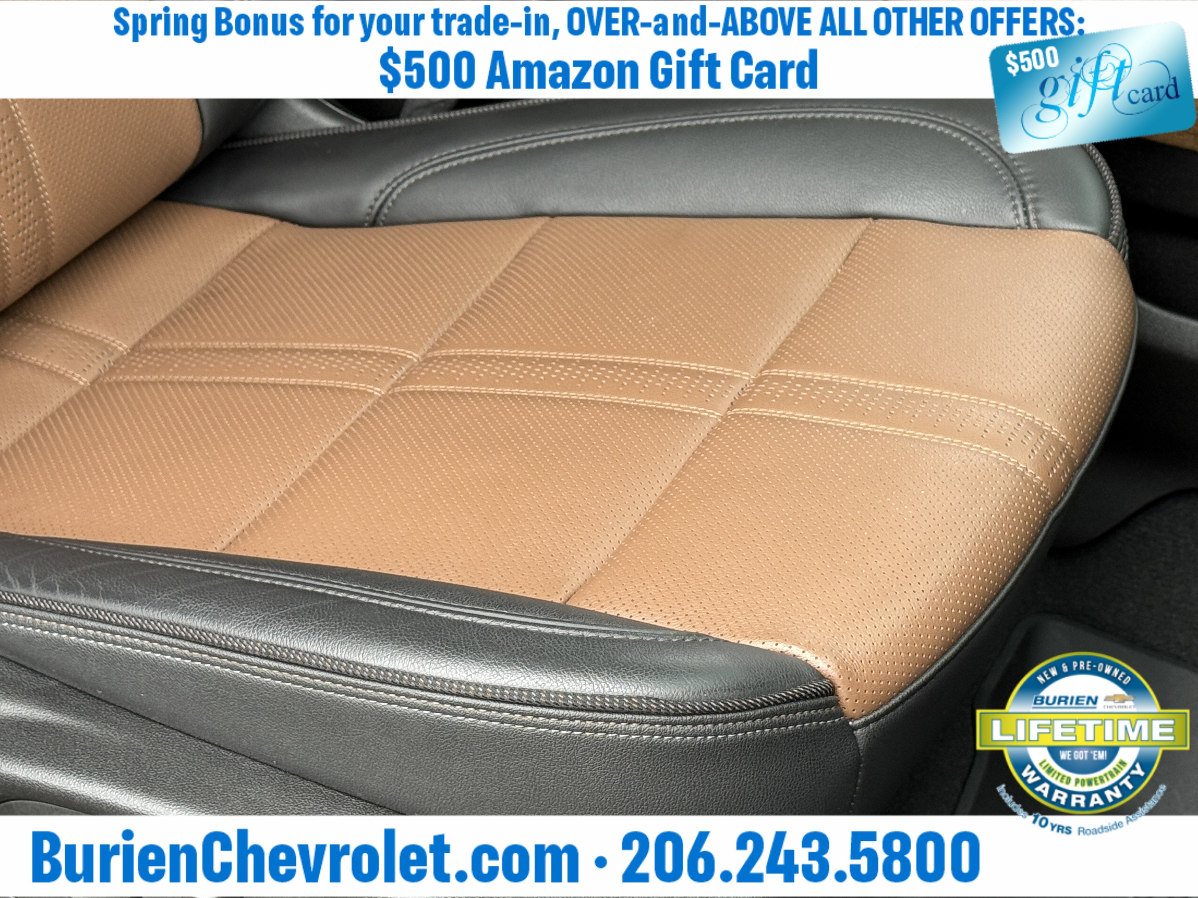 Prices for vehicles as equipped do not include charges such as: License, Title, Registration Fees, State or Local Taxes, Finance Charges, Credit Investigation, Optional Credit Insurance, Physical Damage or Liability Insurance, Delivery Fees, or a negotiable $200 Documentary Services Fee. All photos and graphics for illustration purposes only. Where actual vehicle photos are not available, stock image representations may be displayed. Prototype features or options may be displayed. Dealership makes no representations, expressed or implied, to any actual or prospective purchaser or owner of vehicles as to the existence, ownership, accuracy, description or condition of vehicles' listed equipment, accessories, price or any warranties. Prices may include dealer installed options. Any and all differences must be addressed prior to the sales transaction. The Employee Discount for Everyone is not compatible with Lease offers. See Burien Chevrolet for details.