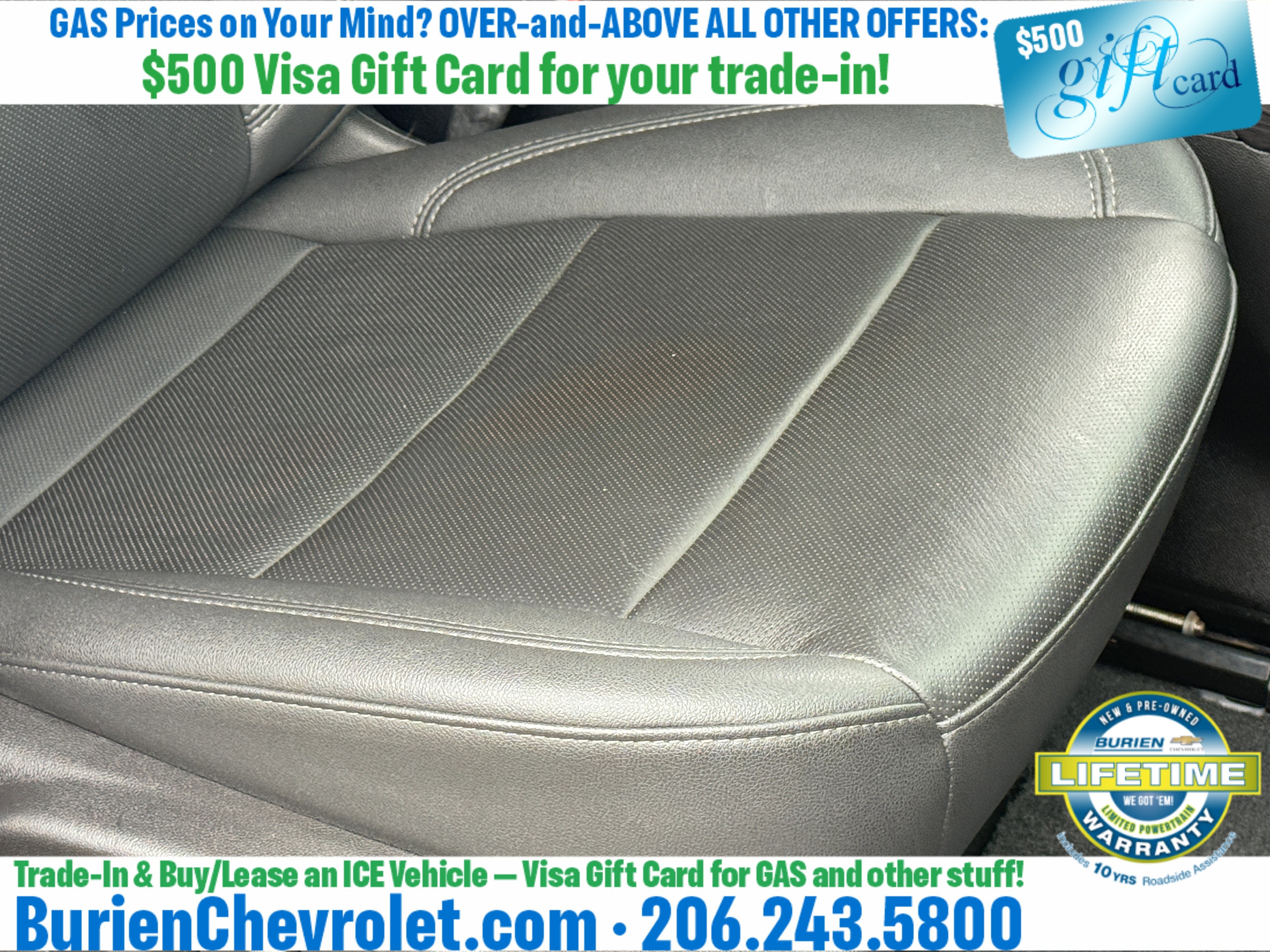 Prices for vehicles as equipped do not include charges such as: License, Title, Registration Fees, State or Local Taxes, Finance Charges, Credit Investigation, Optional Credit Insurance, Physical Damage or Liability Insurance, Delivery Fees, or a negotiable $200 Documentary Services Fee. All photos and graphics for illustration purposes only. Where actual vehicle photos are not available, stock image representations may be displayed. Prototype features or options may be displayed. Dealership makes no representations, expressed or implied, to any actual or prospective purchaser or owner of vehicles as to the existence, ownership, accuracy, description or condition of vehicles' listed equipment, accessories, price or any warranties. Prices may include dealer installed options. Any and all differences must be addressed prior to the sales transaction. The Employee Discount for Everyone is not compatible with Lease offers. See Burien Chevrolet for details.